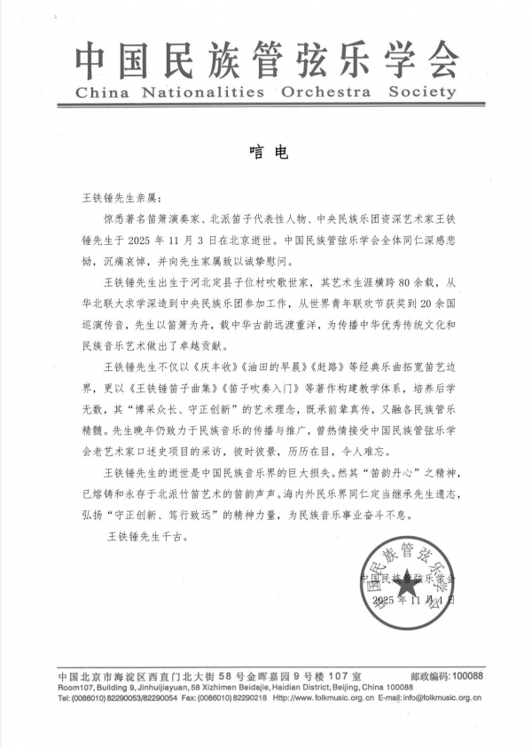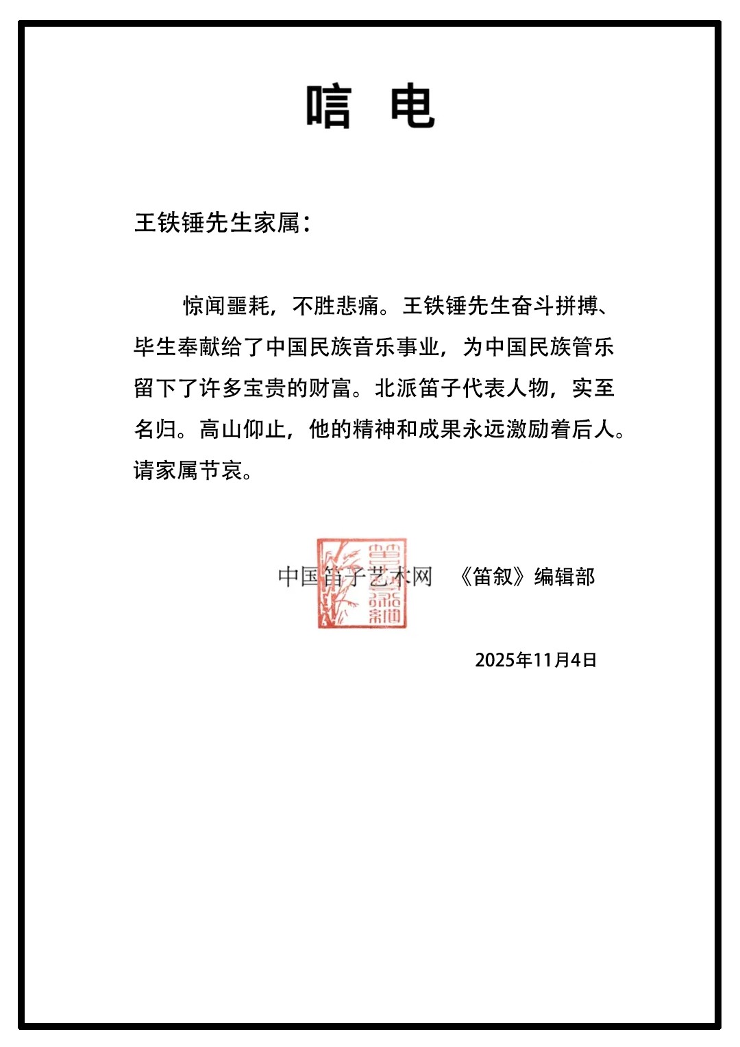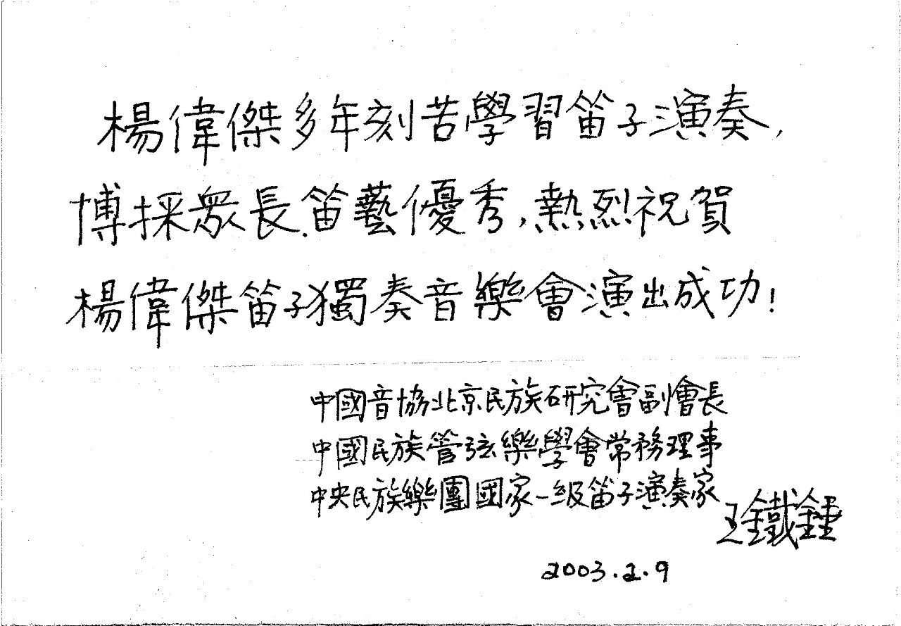 琴园国乐团团长林谷珍先生策划中国竹笛名家名曲音乐会系列第二十场:2009年11月28日 王铁锤/ 李镇《铁笛声长曲未终》演出资料(供图:林谷珍,摄影:谢旭鸣)
