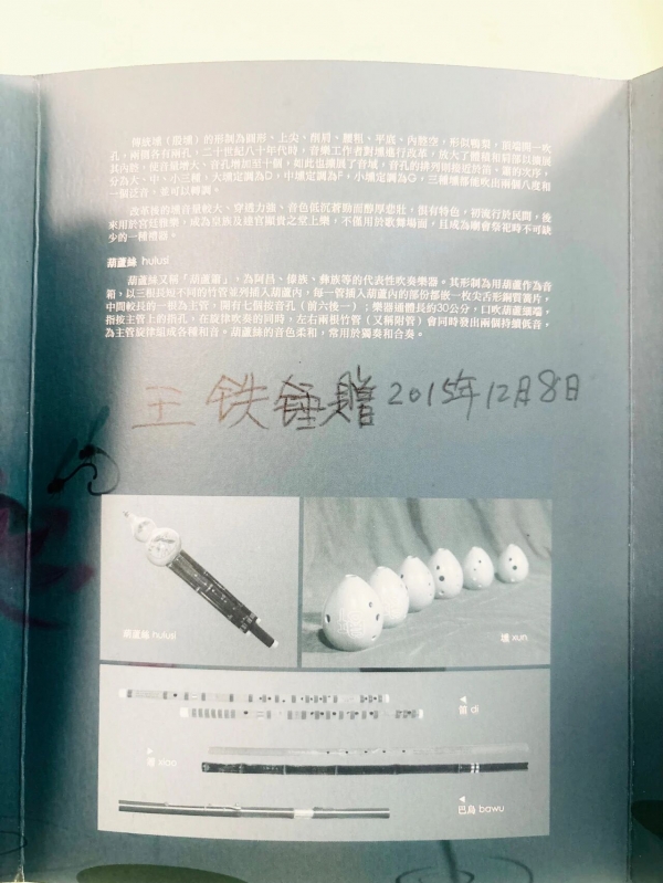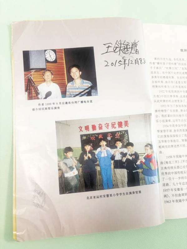 2015年8月,王铁锤大师在家中接受笛子艺术网拜访并赠送签名资料留念(供图:笛子艺术网)