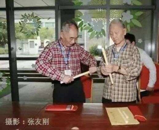 2016年许国屏先生向王铁锤先生交流多功能笛(供图:许国屏,摄影:张友刚)