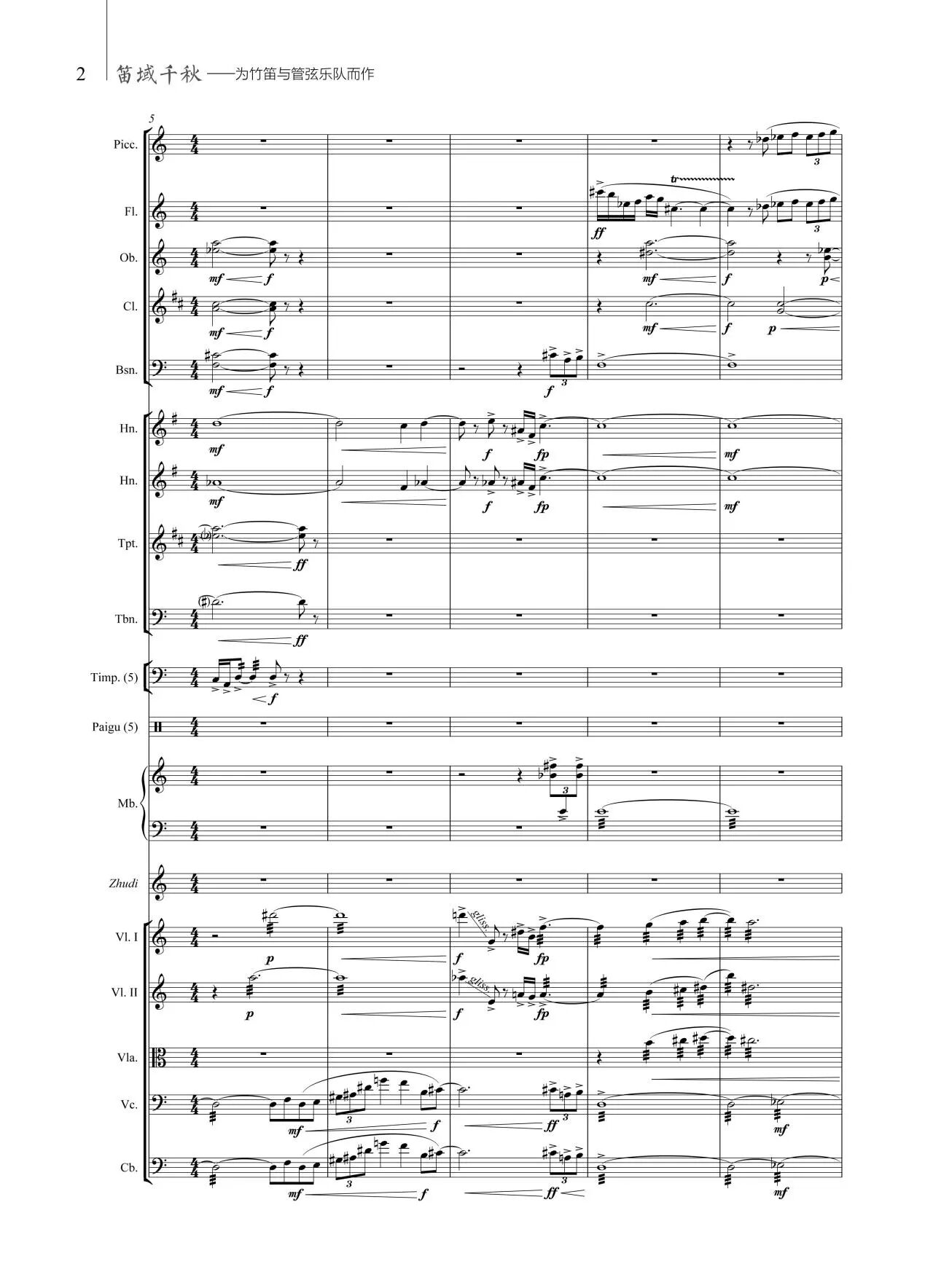 作曲家试图借助竹笛这一多维度器乐形象的感知力,塑造出跌宕起伏的情绪,置身穿梭于这广阔的时域与地域,借以表达对竹笛之气韵的向往和情怀。