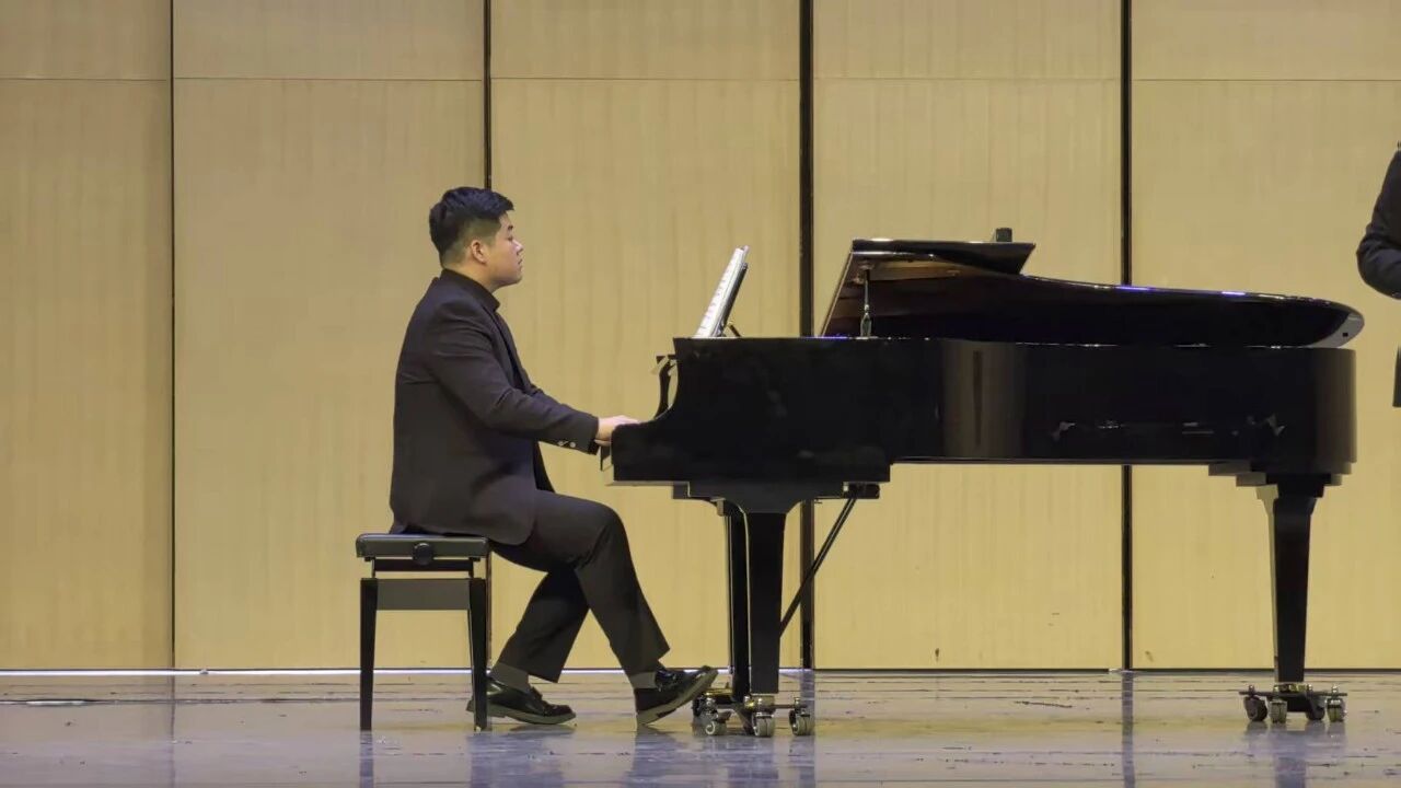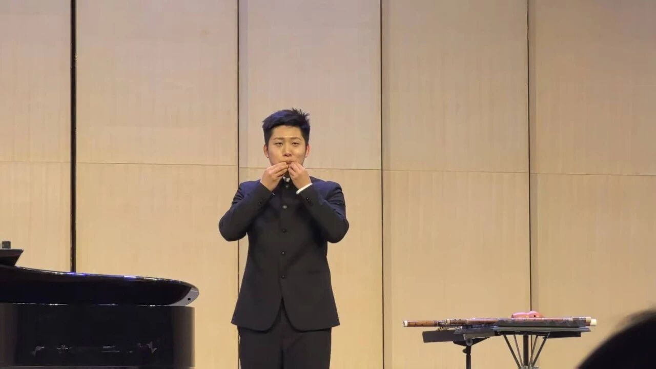 音乐会开篇《塞外随想》,他尽展其南北笛艺交融、技法与意境兼备之才华。清越笛音,勾勒大漠苍茫,或低徊如征人望乡,或高亢若风沙卷地,赵志浩钢琴伴奏,为苍凉之境添细润底色。继而《陕北四章》,第三章《往事》以笛音低诉,道尽古今沧桑;第四章《闹红火》则凭他娴熟吐滑之技,融腰鼓节律于旋律,自慢板渐至快板,尾段《信天游》重现,欢腾中暗藏西北高原的厚重。