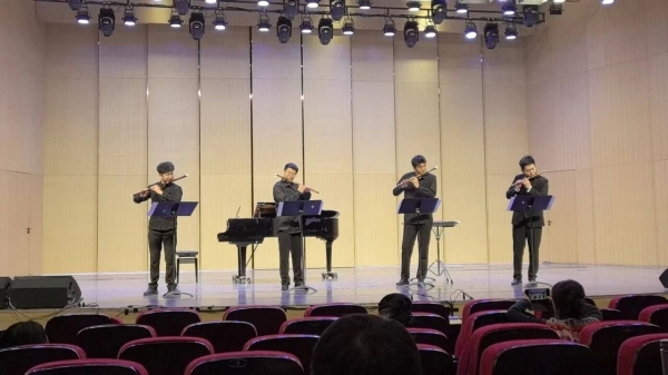 2025年12月30日,西北师范大学音乐学院2023级竹笛专业艺术硕士李明康的毕业音乐会在西北师大音乐厅圆满落幕。这场凝聚其数年深耕积淀与匠心坚守的音乐会,以五首风格迥异的曲目,为他的硕士求学生涯汇报演出,亦让在场观众沉浸式体悟到竹笛这门传统艺术的深厚底蕴与独特魅力。他研习竹笛演奏多年,屡获国家级、省级赛事殊荣,此次音乐会在导师王明辉副教授的悉心点拨与艺术指导赵志浩的大力支持下,他以精湛娴熟的演奏技艺与真挚饱满的情感表达,为其硕士阶段的专业研习交出了一份优秀答卷。