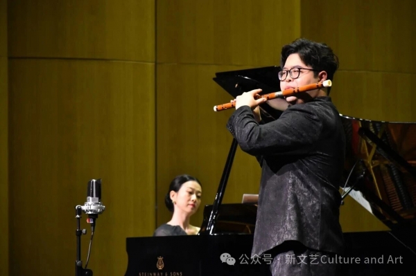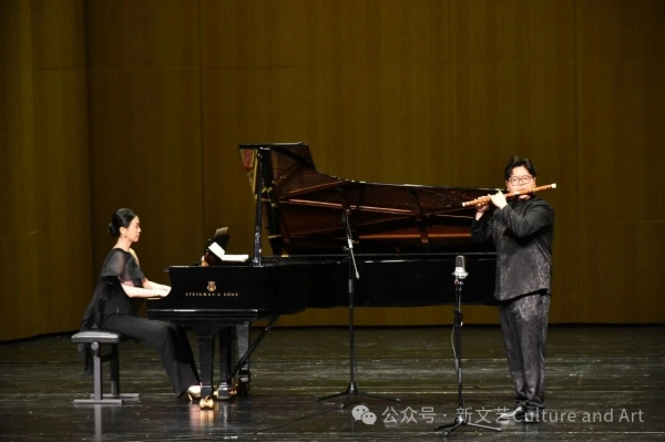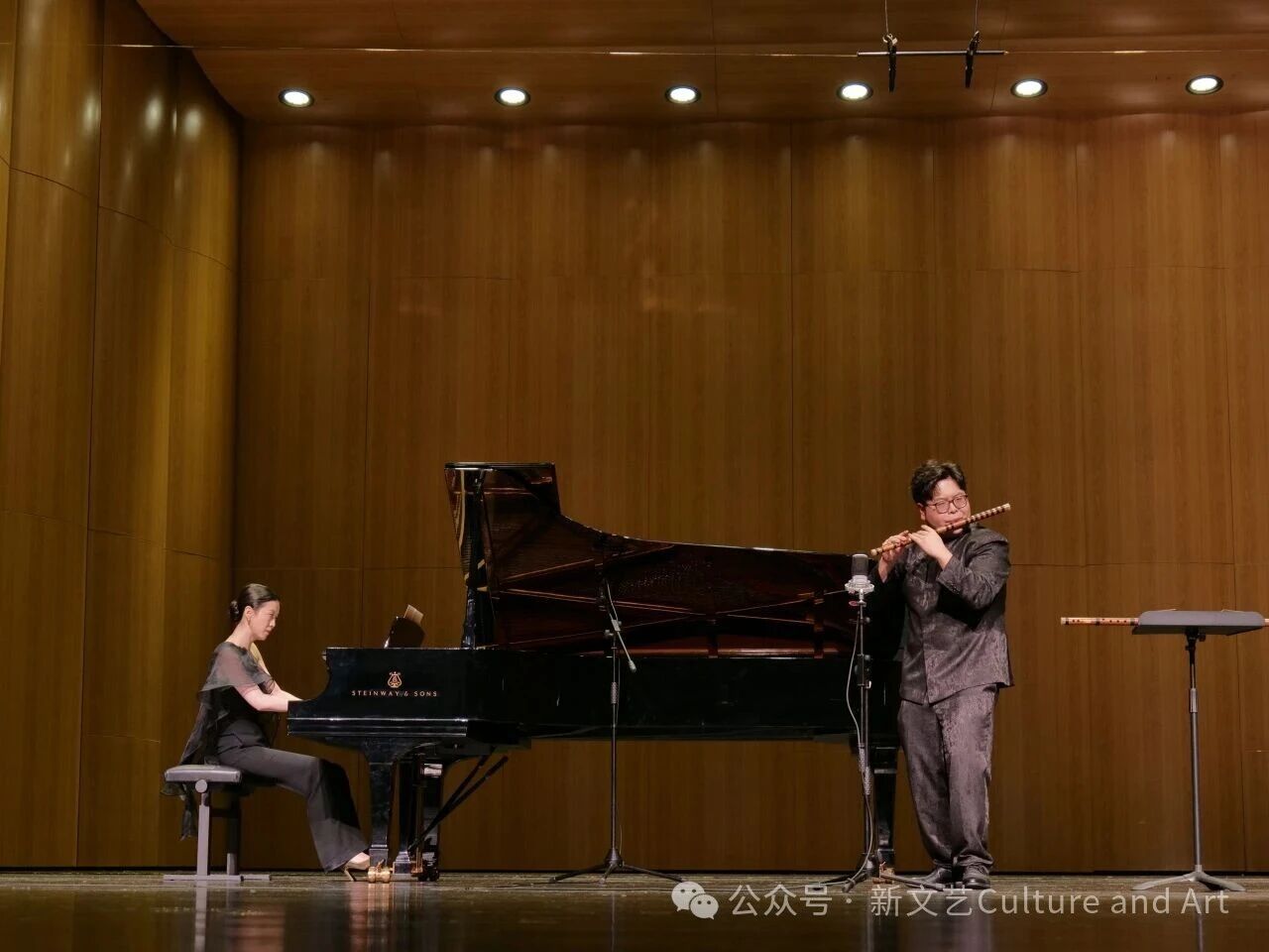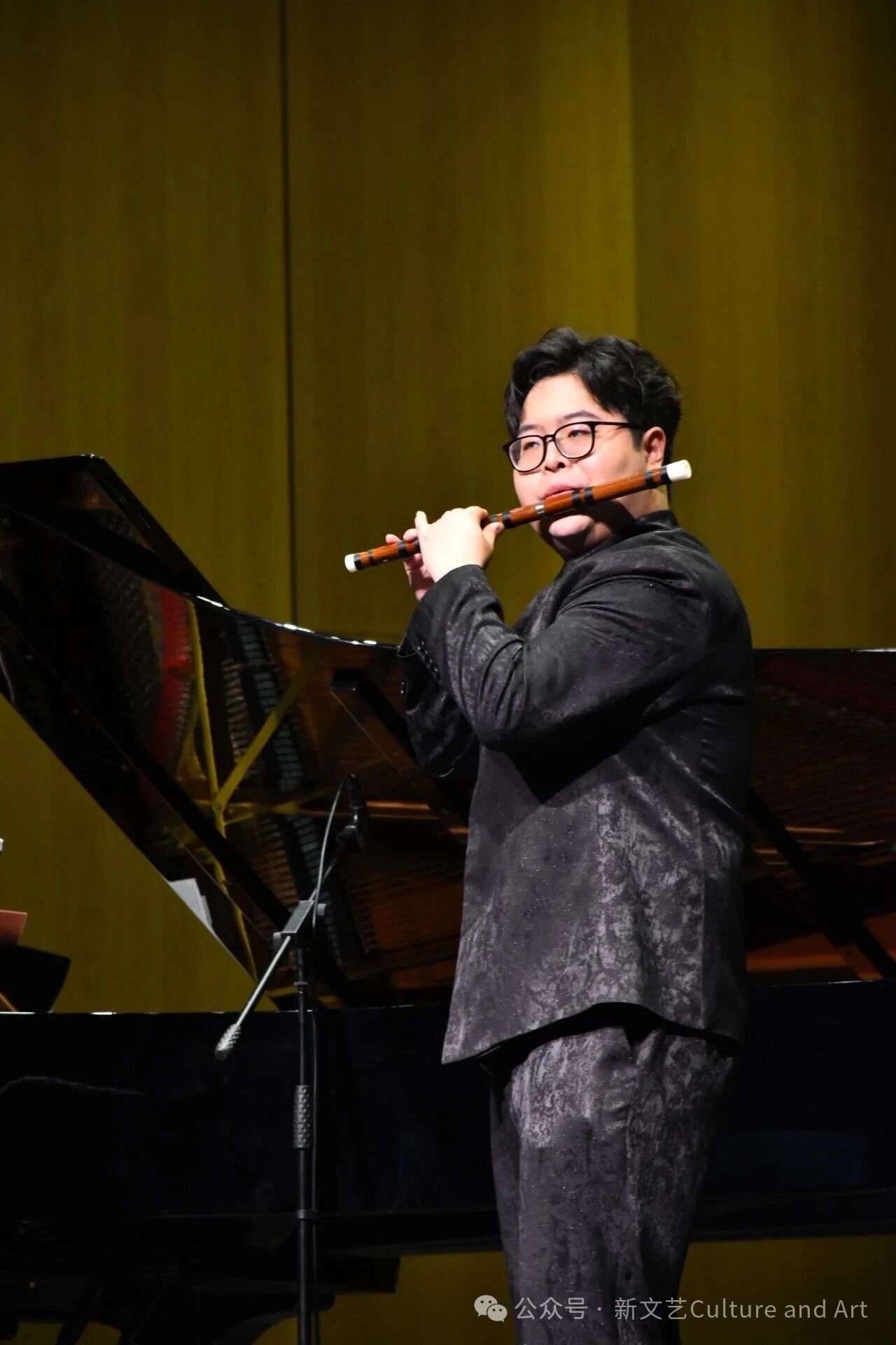 卢亮辉先生的《春风夜雨情》以台湾民谣为素材,用笛声讲述跨越时光的思念故事,细腻的情感表达让观众身临其境;助演嘉宾、程竞楷的朋友、也是宁波籍沈阳音乐学院优秀学子华聪莹演奏的陈哲女士创作的古筝独奏曲《晨兴》取材京韵大鼓《丑末寅初》,以“散-慢-中-快-急”的节奏铺展老北京清晨的市井烟火,满是地道的京腔京韵;音乐会主题作品《春悟》作为刘铁男教授的代表作,将初春的生机、遐想与希望融入旋律,程竞楷以多年学艺的感悟演绎作品,让笛音成为春日最美的告白;郝维亚先生的《陌上花开》化用苏轼经典词句,传统旋律与现代创作手法交融,笛声里尽是春暖花开的悠然与生机。