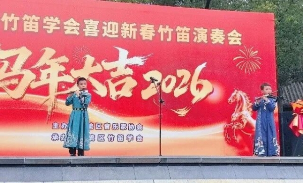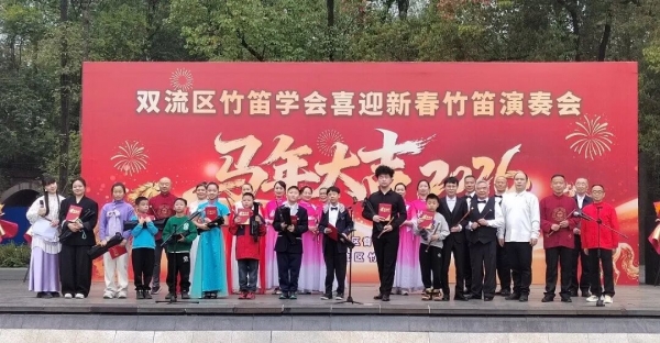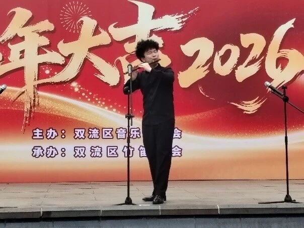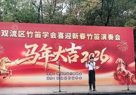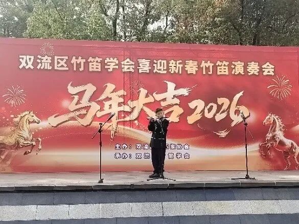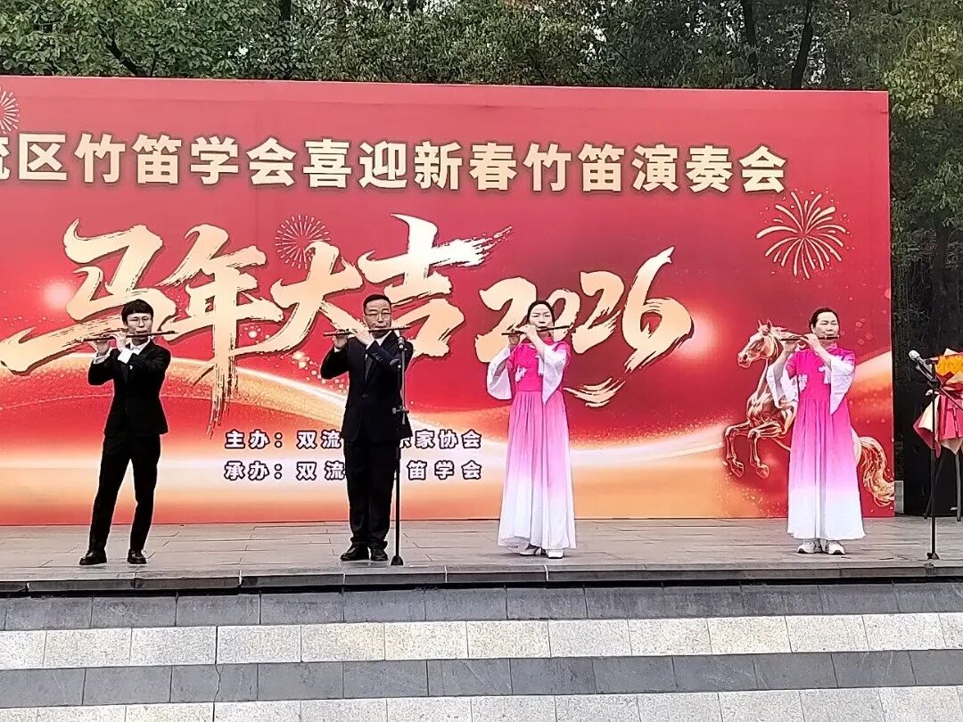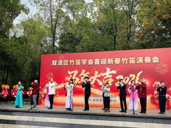 2026年2月27日下午,成都市双流区竹笛学会在棠湖公园演艺广场成功举办2026“喜迎新春”竹笛演奏会。整场演出以笛为媒、以乐传情,为市民献上一场精彩的民族音乐盛宴,送上新春的美好祝福。