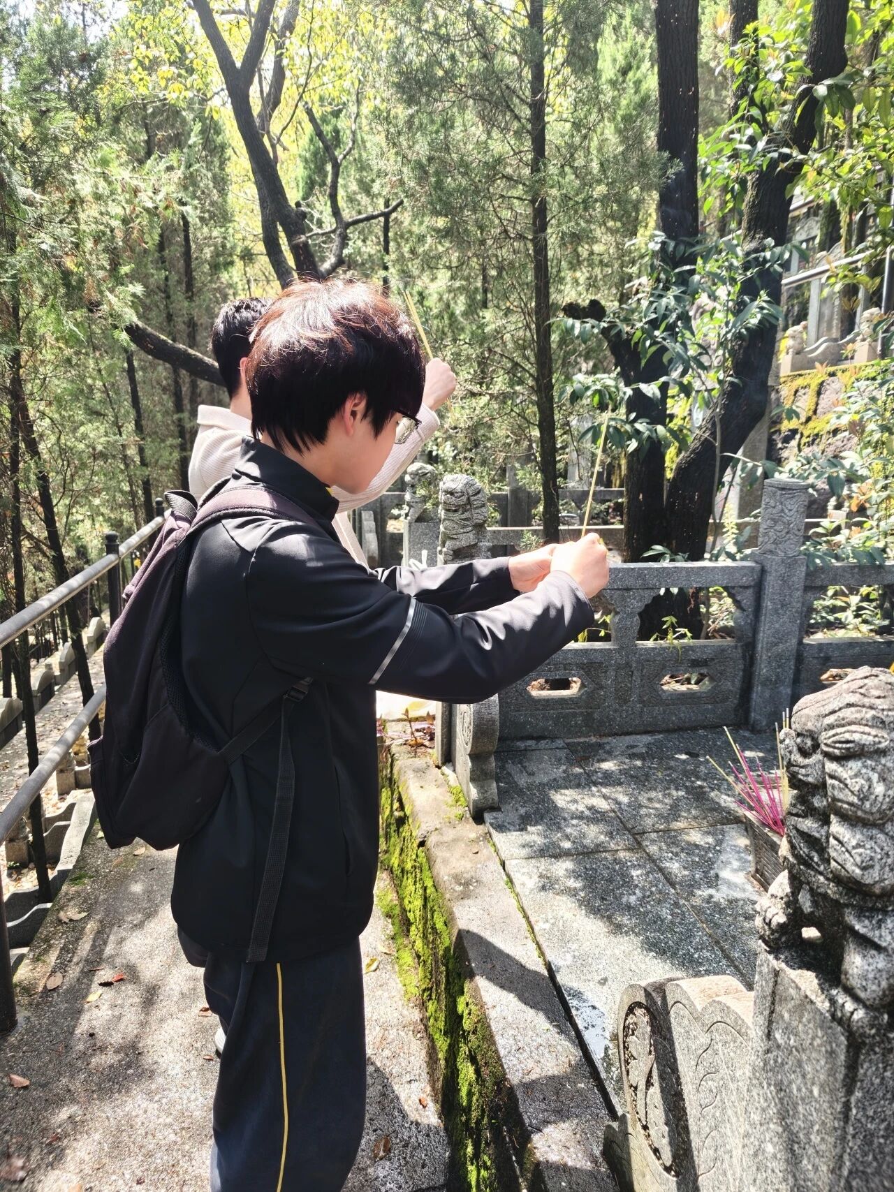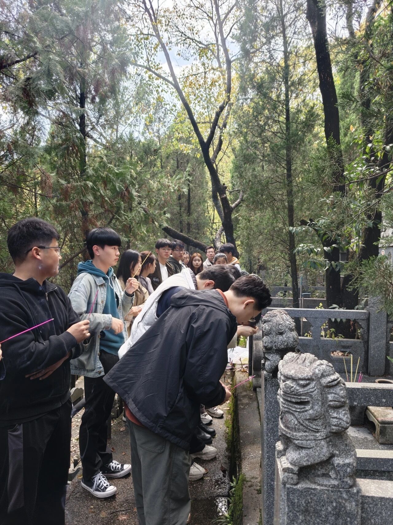 今日重踏石阶小路,草木含情,山风寄思。我们前来祭拜,既是感恩,亦是明志。作为竹笛专业的后学,我们深知,传承二字,不止于技法的延续,更在于精神的承继。先生一生历经起伏,却始终能以豁达之心待之,先生的从容与坚韧,恰如他所吹奏的乐章——跌宕处不失其骨,悠远处不失其韵。