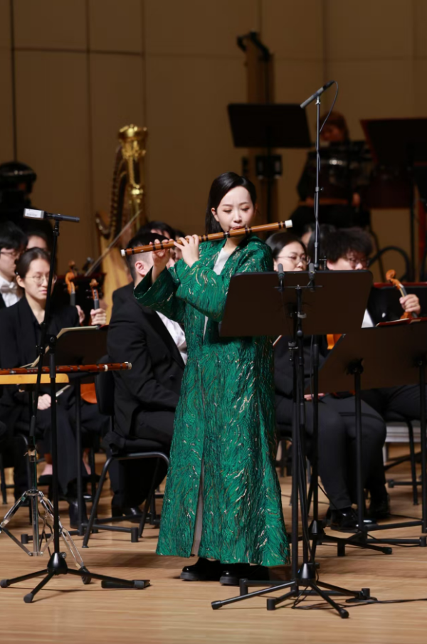 一曲《日出东方》,灵感源自陕北民歌《东方红》,如晨光破晓,带着大地的温度与历史的回响。4月10日,青年竹笛演奏家、中央音乐学院竹笛专业教师范临风,携手中央音乐学院交响乐团,在中央音乐学院歌剧音乐厅举办《山·范临风竹笛协奏曲专场音乐会》。她用一支竹笛,演绎了五位中国现代作曲家的五部作品:郭文景《愁空山》、秦文琛《苍山序》(第一乐章)、徐可《日出东方》、郑阳《归去来兮——雪山之恋》,以及朱践耳1990年创作且极少演出的《第四交响曲》。