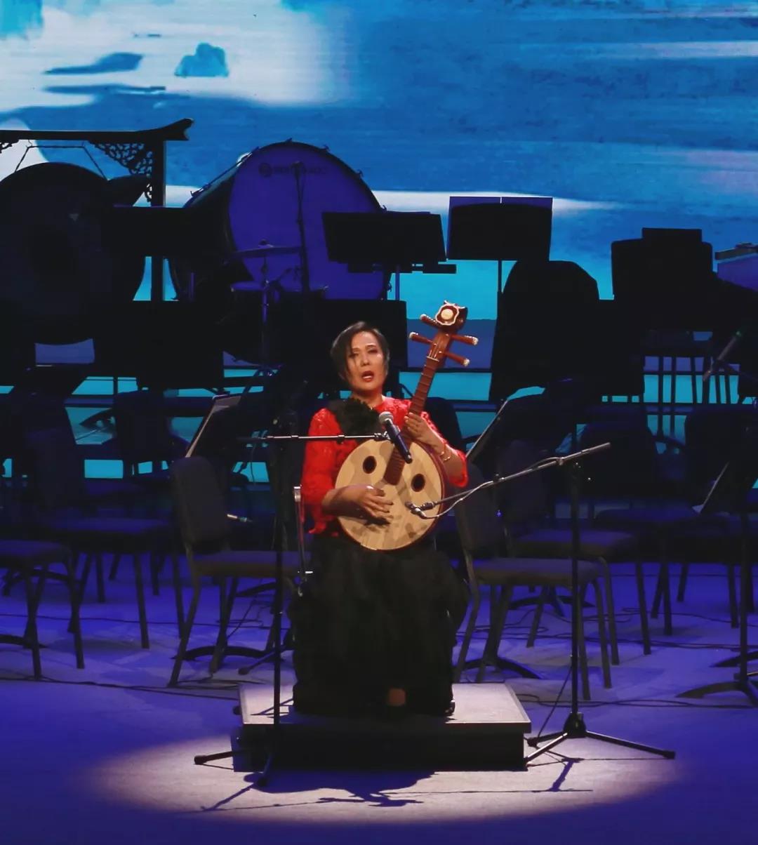 音乐会的第一个高潮是中国音协副主席、二胡协会会长宋飞女士带来的《悲歌——江河水》。《江河水》是闵惠芬早期演奏生涯的代表作,1963年的电影《百花争艳》让她演奏的这首作品家喻户晓,影片中年轻的闵惠芬将这首曲子拉得低处如泣如诉,高潮情绪激越,犹如滔滔江水千回百转,万古奔流。从此她的名字也与“江河水”这三个字紧紧连在一起。宋飞女士也曾从孩提时代就受到闵惠芬演奏的影响,也曾经多次与闵老师交流畅谈。音乐会现场宋飞的演奏则采用了与前辈不同的全新方式,她将二胡系于腰间,全程站立演奏,一指一弓,一顿一挫,虚实相生,使人迅速进入“诉说悲切”的状态,站立演奏使得胡琴低音区更加浑厚,悲痛之感顿生,尾段江河咆哮、激浪冲天,怒火爆发,展现了她刚柔并济的独特魅力。