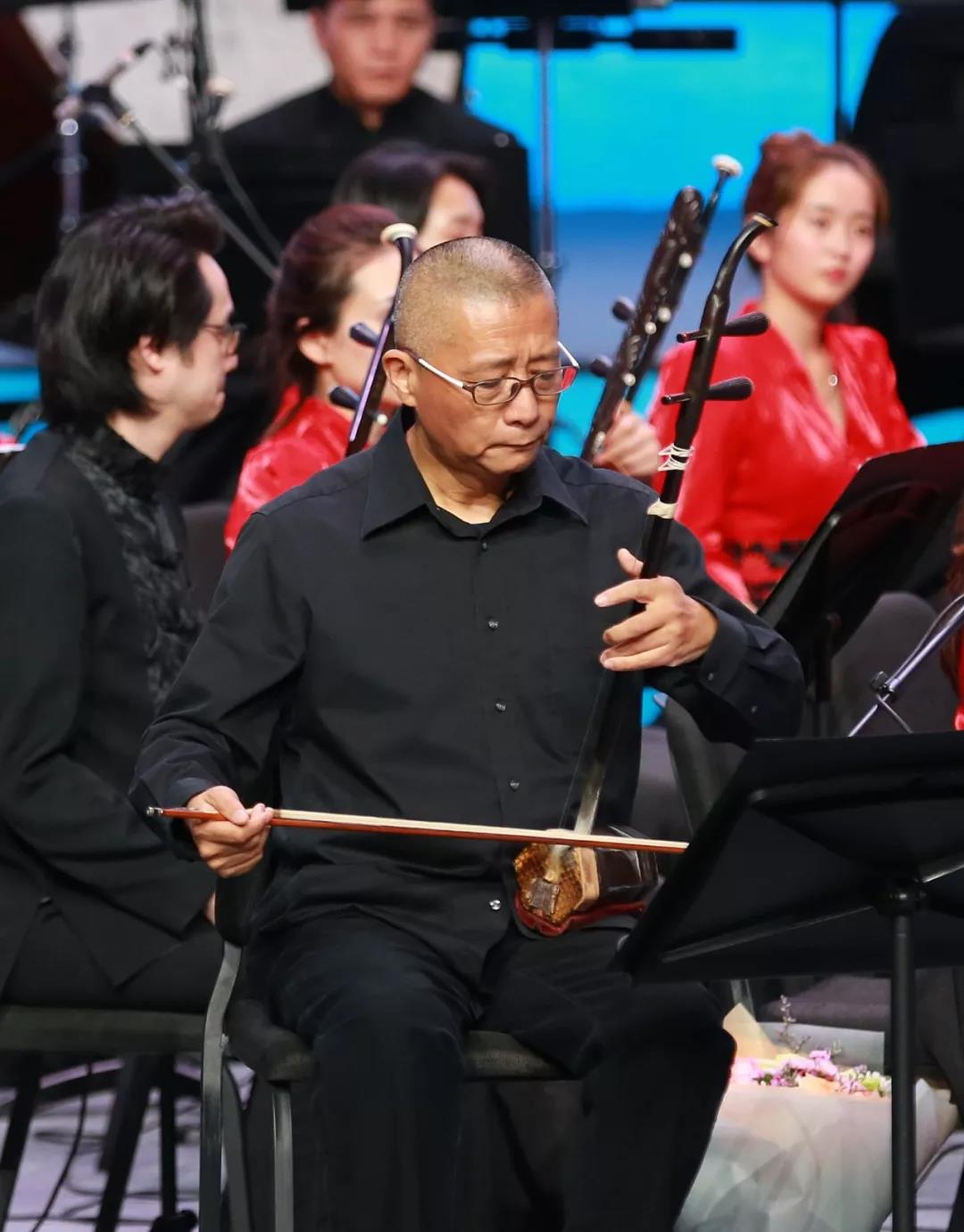 从狮城专程赶来的新加坡华乐团二胡首席赵剑华是闵惠芬的大弟子,他演奏的是老师在重病中创作的二胡与乐队作品《音诗——心曲》。1986年,闵惠芬罹患的黑色素瘤病情恶化,据她回忆,在与病魔抗争的恍惚间,她仿佛看见“蓝色的雾”弥漫整个房间,听见远处飘荡着温暖、圣洁、包含眷恋之情的旋律。醒来之后她挣扎着将那个旋律记录下来,在病床边她和多年的老朋友作曲家瞿春泉商量探讨,共同创作了这首生命之歌《音诗——心曲》,一举荣获“上海之春”音乐创作二等奖。在同年5月的“上海之春”民族音乐专场音乐会上,由大弟子赵剑华演奏二胡,瞿春泉指挥。时隔近30年,已是耳顺之年的赵剑华将此曲献给恩师,弓弦倾情诉说,化作一股热流直击内心,以情动人。恩师受病魔折磨,与命运抗争时,勇敢、坚强而执着的精神在赵剑华的琴声中得以延续。