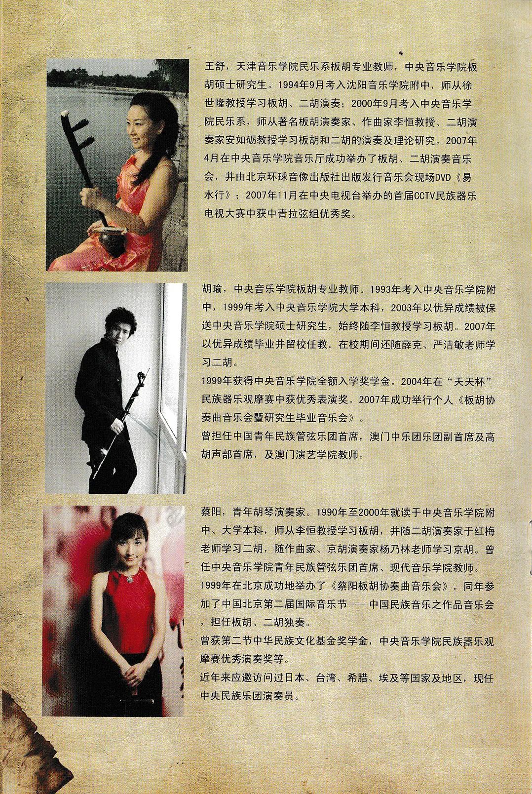 5.三弦作品《秋夕》(1989年中央音乐学院学报),《往事》、《胡笳十八拍主题随想曲》(2002年中国民族管弦乐学会考级教材)