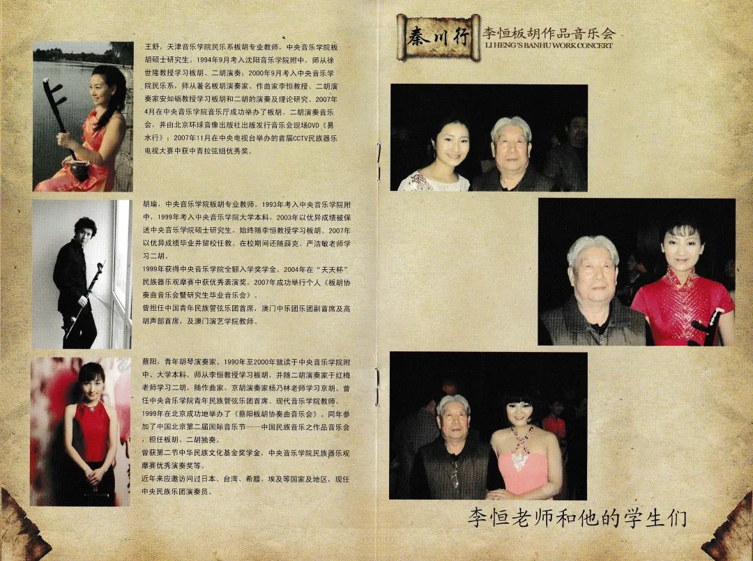 8.音乐会《李恒板胡独奏协奏作品音乐会》(北京1985年11月),《板胡之夜》(1993年在新加坡举办,即李恒板胡独奏及作品音乐会),《李恒板胡独奏音乐会》(1998年3月台北举办),《李恒板胡作品音乐会》(2009年在天津举办)等。