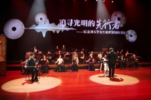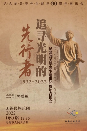 6月8日晚,无锡民族乐团在无锡市人民大会堂带来了“追寻光明的先行者”纪念刘天华先生逝世90周年音乐会,由无锡民族乐团艺术总监邓建栋担任音乐会总策划和讲述人,特邀青年指挥家陈志昇执棒,乐团青年演奏家刘潇、叶卉、吴艳杰、洪强、周渝、沈锦薇、李若楠等倾情演绎大师经典名曲。“刘氏三杰”后人刘育熙教授回顾了父辈的往事。无锡市委宣传部常务副部长陆惠玲、无锡市文广旅游局副局长刘烈、无锡市文发集团总经理陆志强等领导与现场近千名观众一同聆听了本场音乐会。历史长河无声奔去,众人在音乐中带着百年之后仍然不曾淡却的情感,跨越了时空,致敬这位追寻光明的先行者。