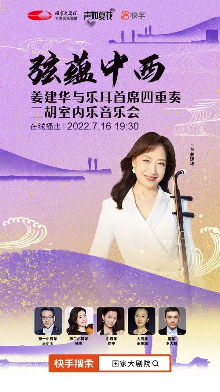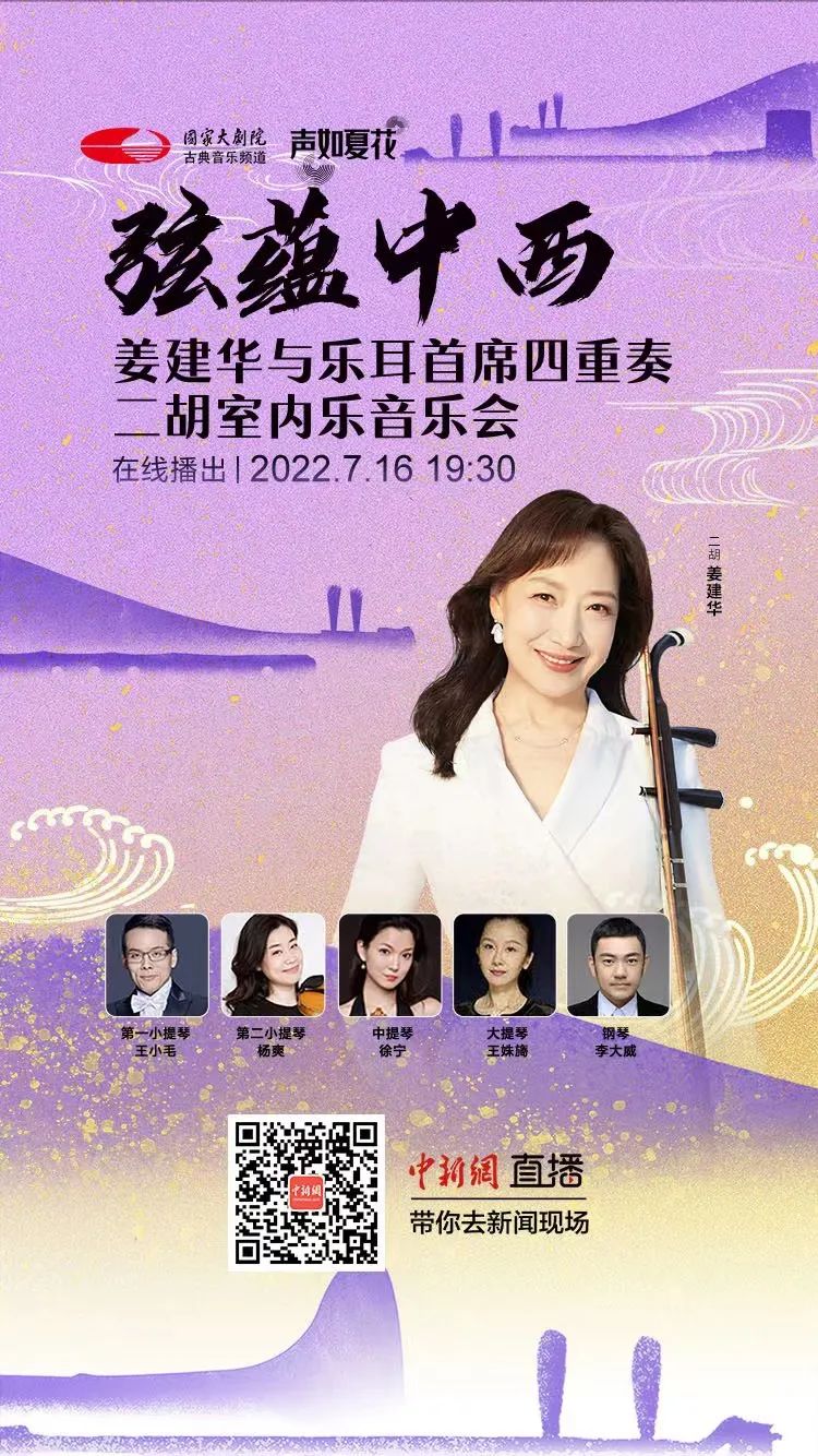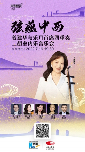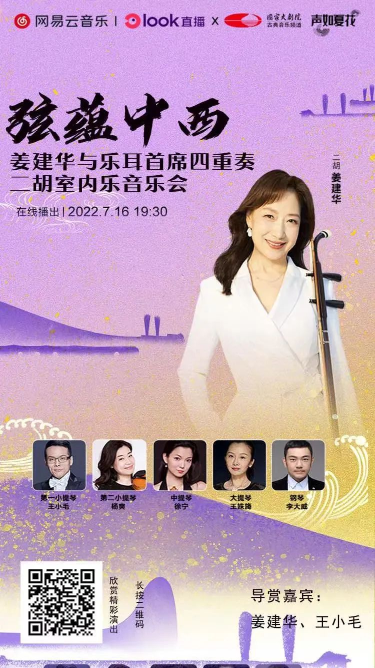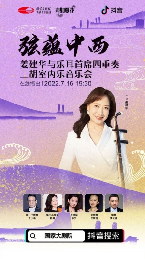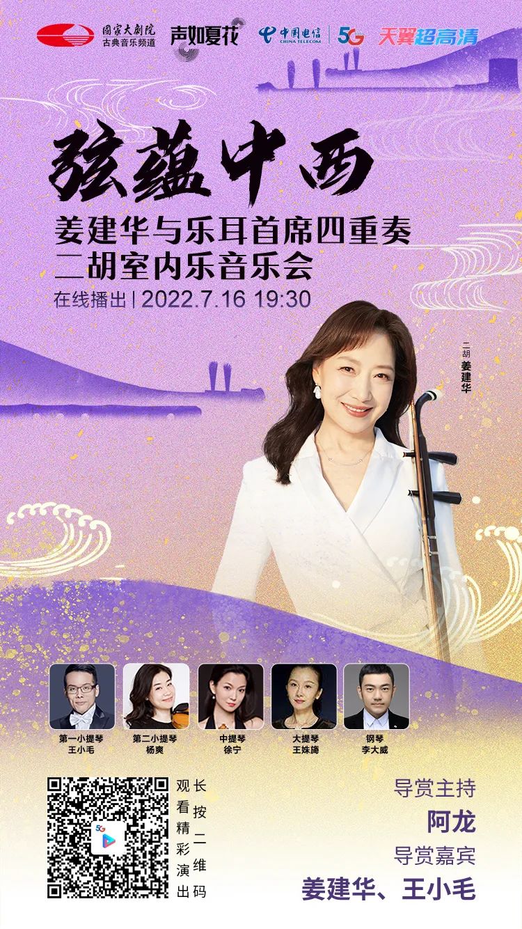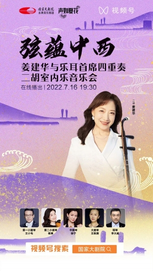 怀揣恪守匠心的情怀钩沉古今,民族乐器二胡将与西方弦乐四重奏邂逅相遇。二胡演奏家姜建华再度奏响令指挥家小泽征尔潸然的《二泉映月》,赋予曲目返朴归真的灵魂质感。日本作曲家加古隆创作的《大河的一滴》、《弦歌幻想》,运用刻画入微的二胡,实现两首东方美学作品从冥思到向心的深度探索。