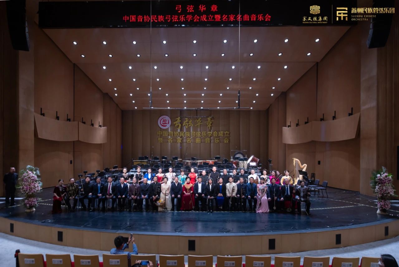 4月25日,“弓弦华章——中国音协民族弓弦乐学会成立暨名家名曲音乐会”在江苏省苏州市苏州民族管弦乐团音乐厅精彩上演。图为演出结束后,演奏家们共同合影。
