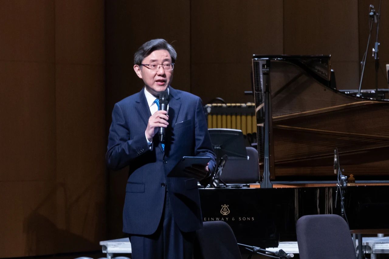 4月25日,“弓弦华章——中国音协民族弓弦乐学会成立暨名家名曲音乐会”在江苏省苏州市苏州民族管弦乐团音乐厅精彩上演。图为上海大学音乐学院院长、中国音协理事王勇作音乐会导聆。