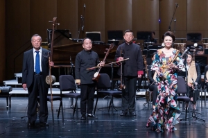 随后,蒋步先、苏雅、金顺花、张全胜四位演奏家带来《中国少数民族弓弦乐器联奏》,将独具特色的牛腿琴、四胡、奚琴、马头琴等少数民族弓弦乐器精彩呈现。