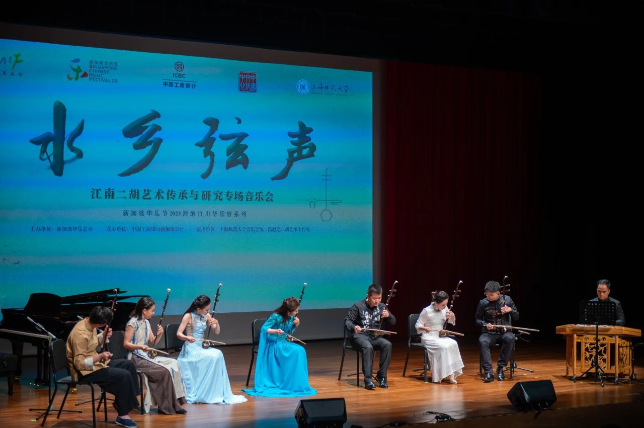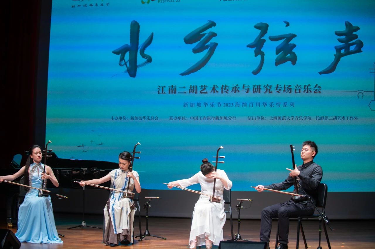 8月24日晚,由二胡演奏家段皑皑率领上海师范大学音乐学院(上师大音院)二胡专业多位师生,在新加坡中国文化中心剧场呈献了一场“水乡弦声”江南二胡艺术传承与研究专场音乐会。在为期一个月的“第三届新加坡华乐节2023”里,这场音乐会是少数由我国演出团体担纲演奏的节目。随着疫情过去,社会复常,国际上华人地区的民族音乐交流也逐渐恢复。这次音乐会除了来自我国的艺术家外,还有来自新加坡南洋艺术学院华乐系的学生担任伴奏,是中新两国民族音乐界恢复线下交流的一个良好例子。