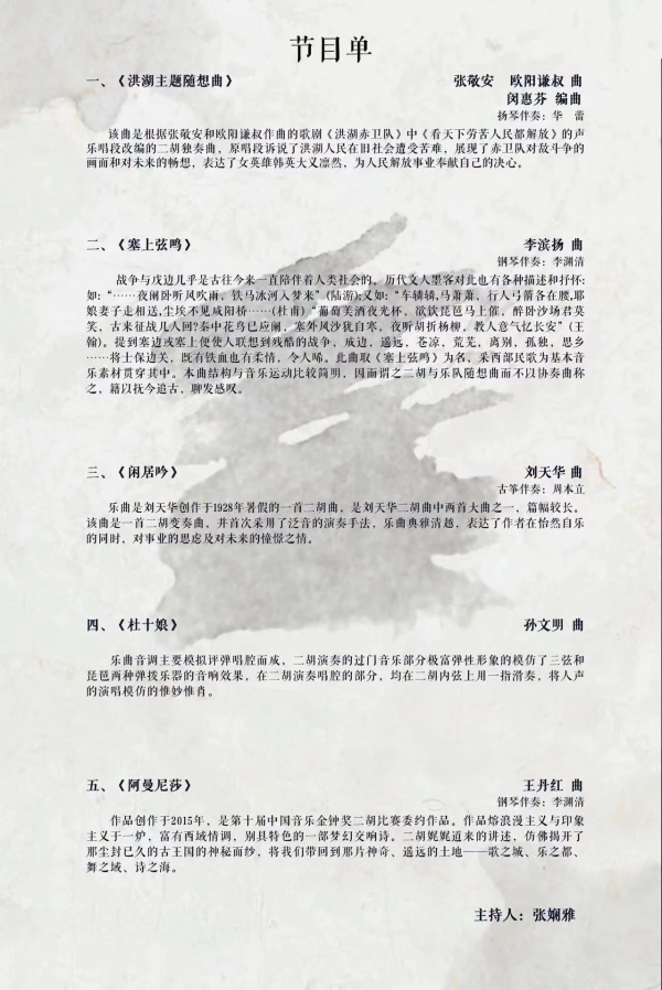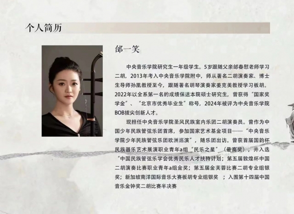 笑谈闲吟——邰一笑二胡独奏音乐会6月5日南京艺术学院音乐学院演奏厅