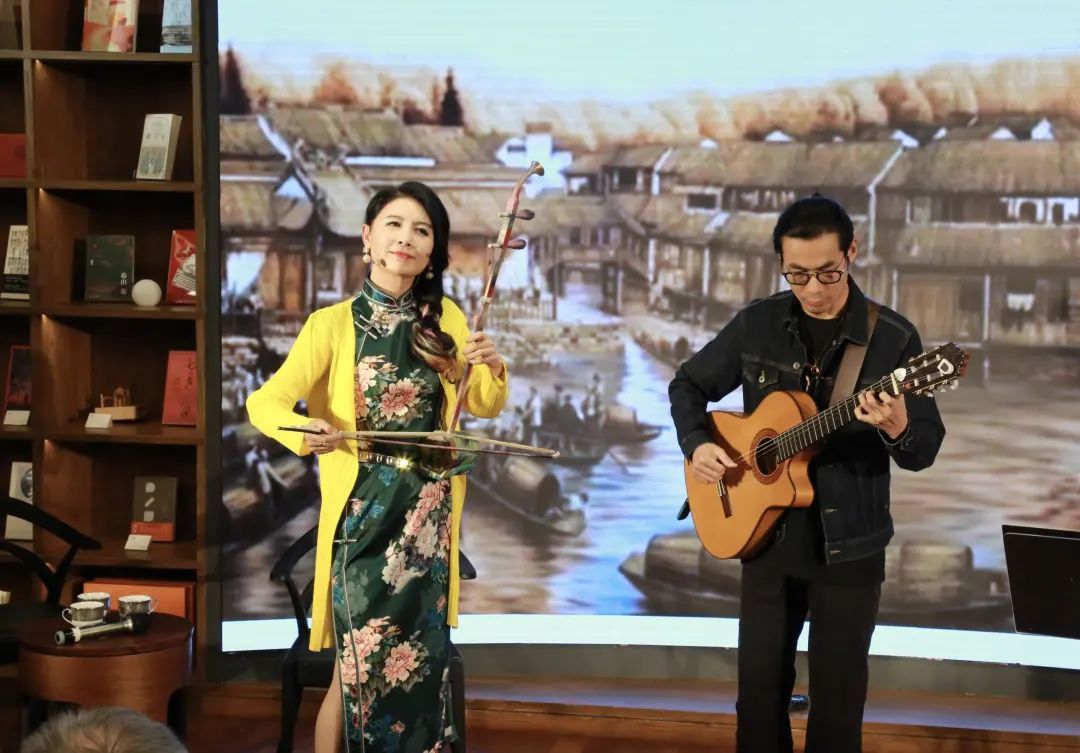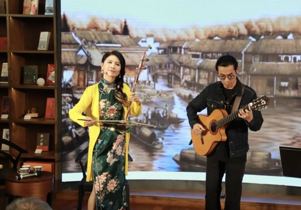 江南,是所有华人心中的故乡。赏艺会上,马晓辉还演绎了《忆江南》这首充满乡愁的经典作品,二胡与吉他的“跨界对话”,把江南的美丽风光和游子的思乡情感表现得淋漓尽致,赋予了这首作品独树一帜的寓意和海派风范。