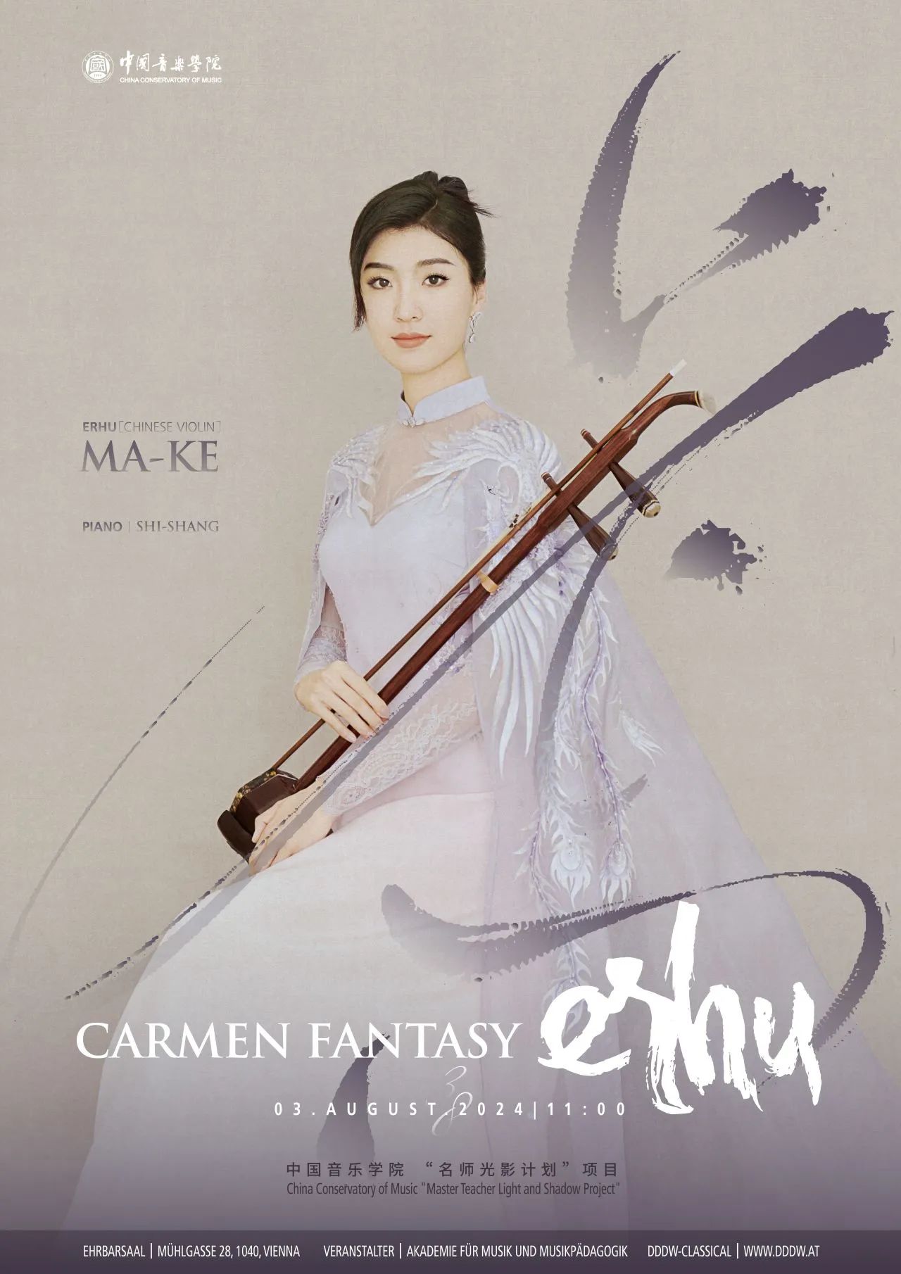 2024年8月3日,在奥地利维也纳一座建于1876年的著名室内乐音乐厅Ehrbar,一场由中国音乐学院青年二胡教师马可带来的二胡独奏音乐会引发了广泛关注。她不仅展示了中国传统二胡作品的魅力,更挑战了超高难度的经典小提琴移植作品《卡门主题幻想曲》、《精灵之舞》等,展现了她深厚的音乐功底和精湛的演奏技巧。此次音乐会入选中国音乐学院艺术实践中心“名师光影计划”项目。