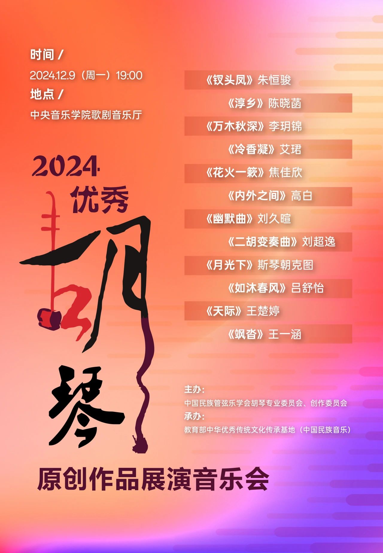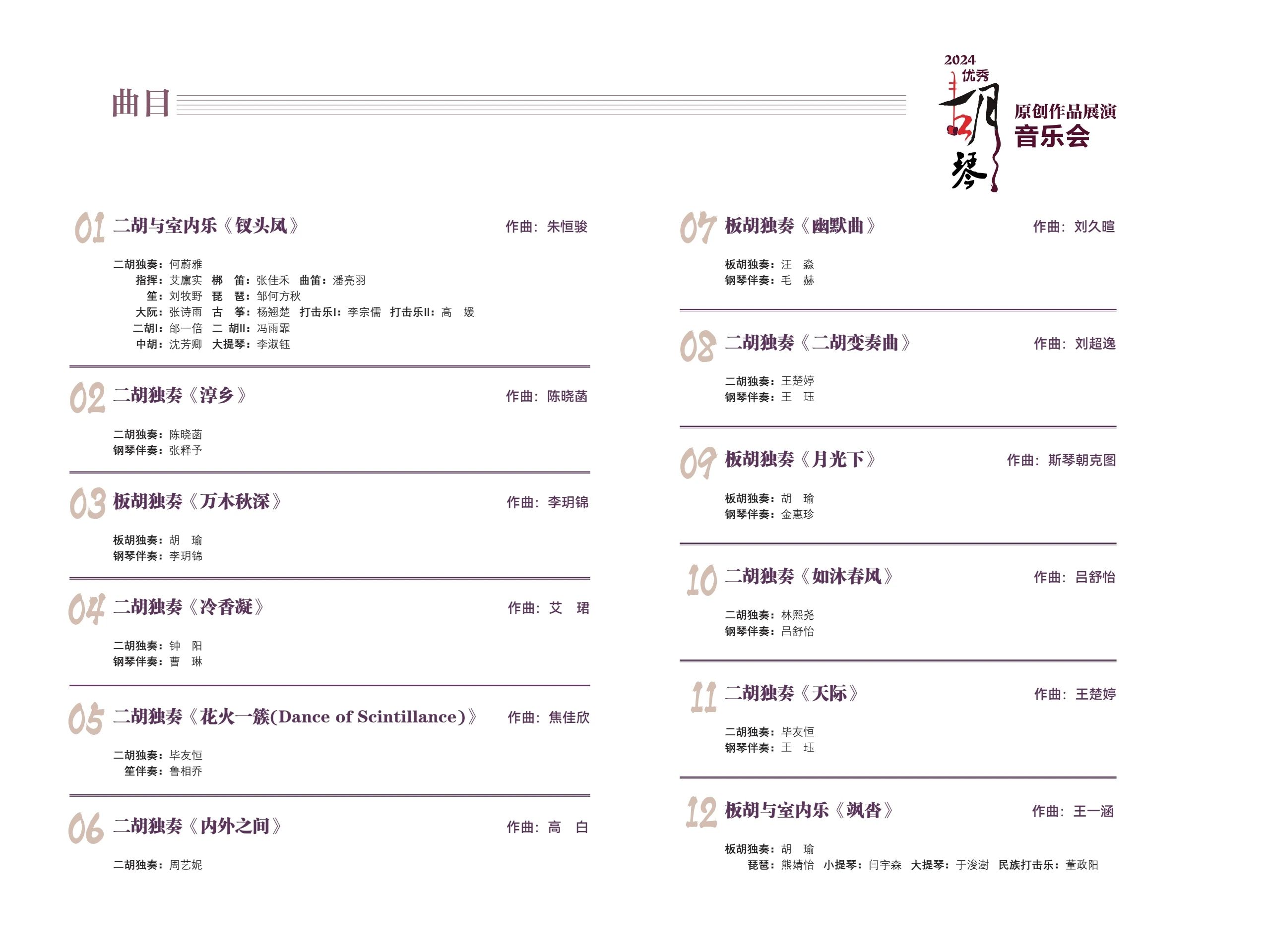 2024优秀胡琴原创作品展演音乐会将于中央音乐学院歌剧音乐厅上演