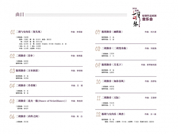 集中展示十二首兼具时代风貌、创新特色、文化意蕴的优秀胡琴原创作品