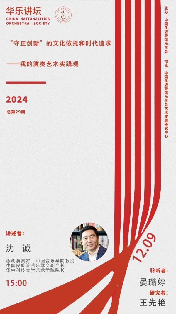 沈诚,中国音乐学院教授,博士研究生导师,现任华中科技大学艺术学院院长,中国民族管弦乐学会副会长,中国音乐家协会民族弓弦乐学会副会长,香港中乐团艺术顾问,乐海乐器签约艺术家。