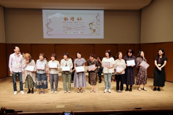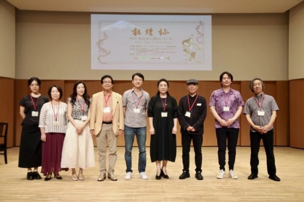 “敦煌杯2025・全日本二胡比赛”由日本二胡振兴会,中国乐器协会,北京华夏璇音艺术传播中心,上海民族乐器一厂共同主办,株式会社优文&东方艺术学院承办。这一赛事是2010年北京华夏璇音艺术传播中心创办人杜怡璇策划至今历时15年,大赛评审委员会主任由旅日37年的二胡演奏家,教育家武乐群担任,评委甘建民(来自安徽旅居东京),张连生(来自北京旅居大阪),刘福君(来自吉林旅居熊本),张滨(来自辽宁旅居名古屋),霍晓君(来自北京旅居东京),李彩霞(来自内蒙旅居金泽)。特别值得一提的是“敦煌杯2025・全日本二胡比赛”特聘中国著名胡琴表演艺术家,教育家,哈尔滨音乐学院院长宋飞担任评审委员会名誉主席,同行的哈尔滨音乐学院年轻二胡教师谢宜含担任评委。19日下午3点举行了获奖选手颁奖典礼,由名誉主席宋飞和各位评委向全体获奖选手颁发了证书。