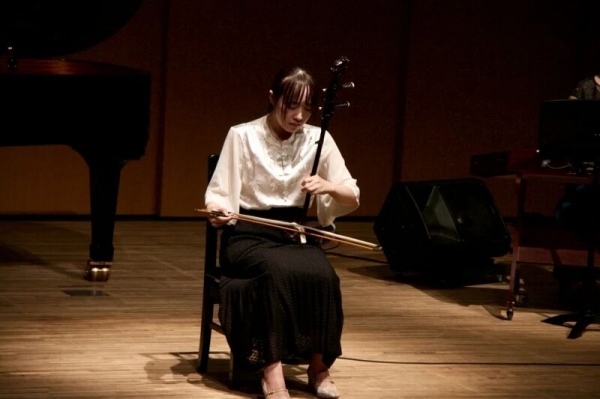评委、哈尔滨音乐学院青年教师谢宜含演奏“第六二胡狂想曲”