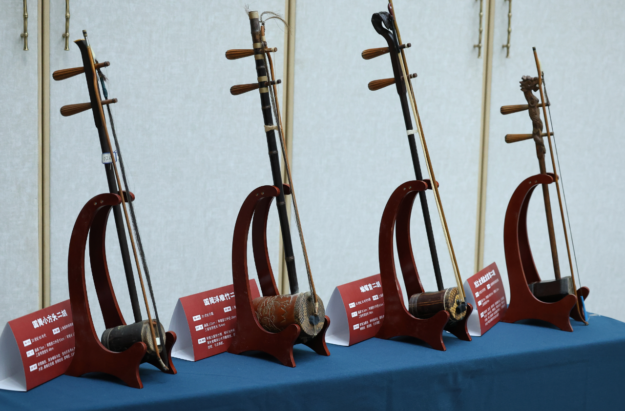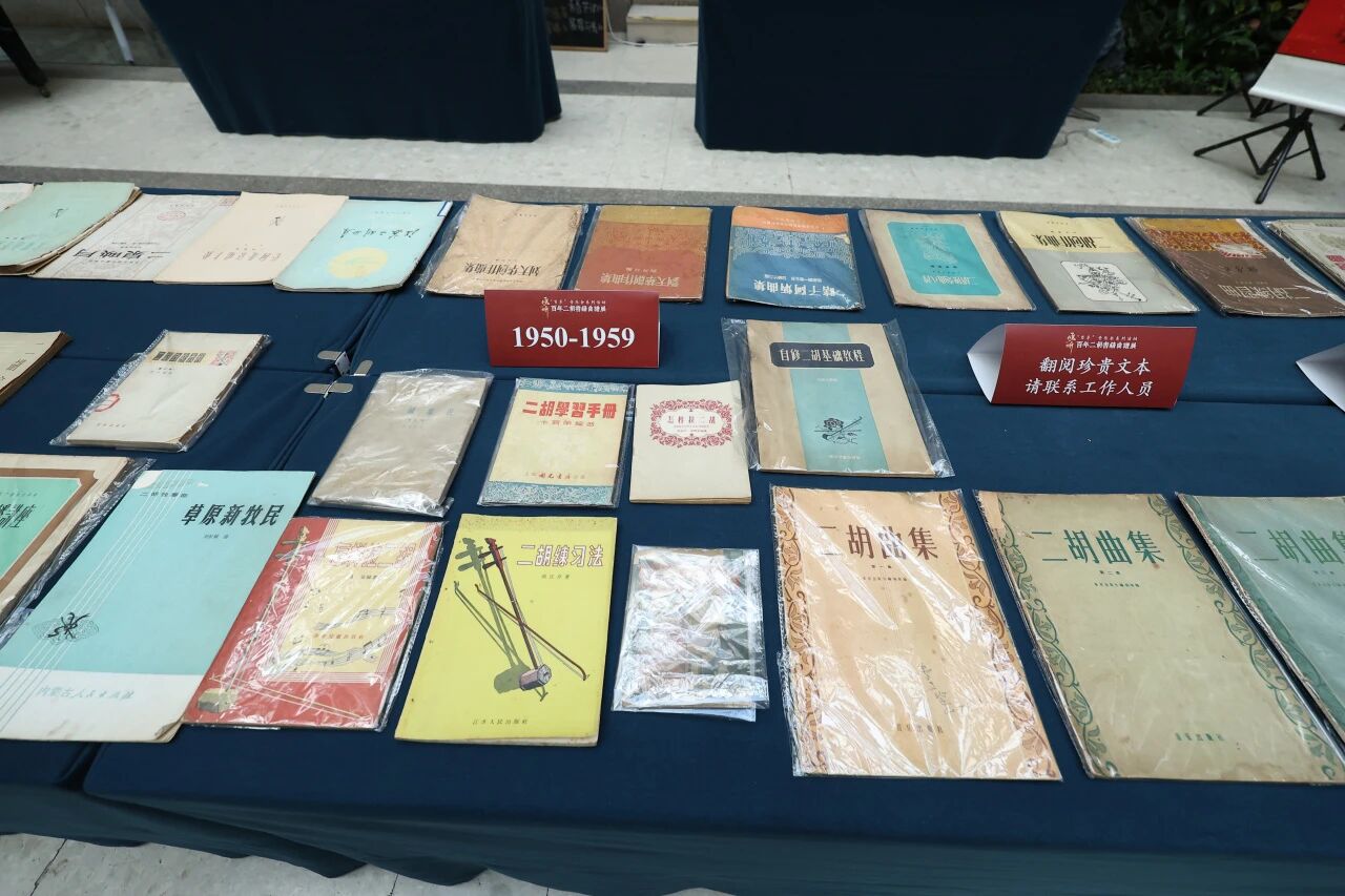 系列活动以“观谱赏琴·乐韵百年”胡琴书谱与乐器展拉开序幕。承蒙多位收藏家前辈鼎力支持,百余部横跨百年的书谱与20余把传世老琴得以在此集结。当观众轻抚那些泛着岁月黄晕的曲谱,凝视琴身上被时光摩挲出的温润包浆,再步入音乐厅聆听它们奏响的旋律,历史便不再是遥远的文字,而成为可感、可触、可共鸣的温度。