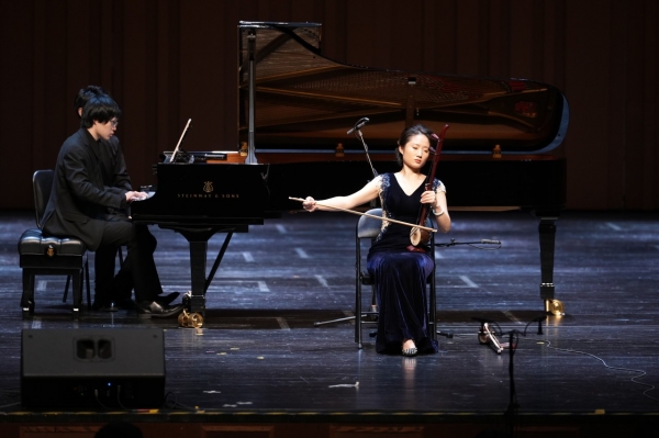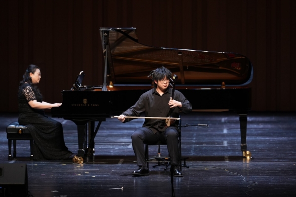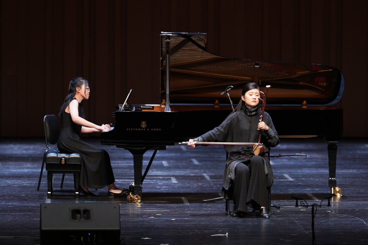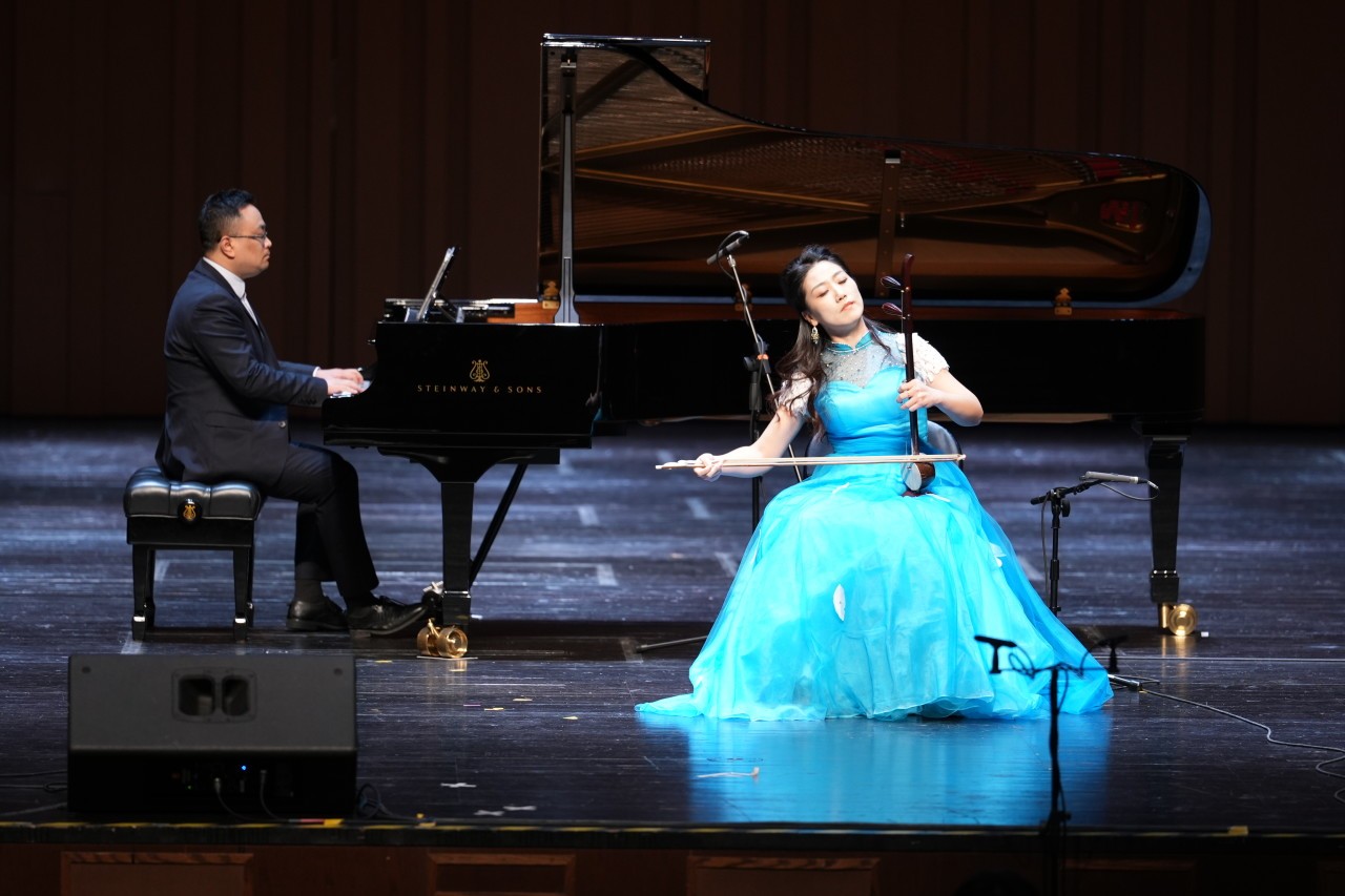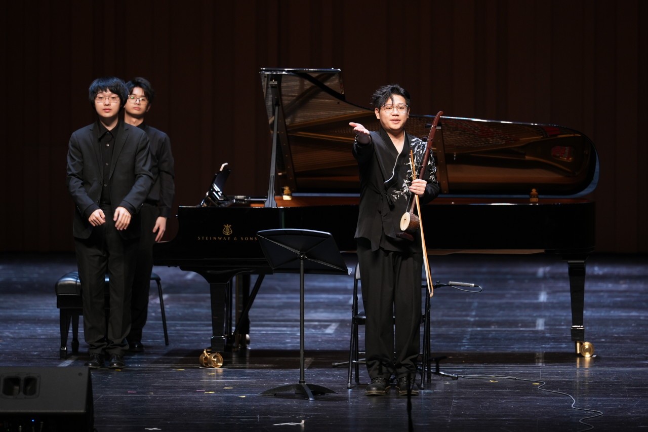 《四象生》(作曲:王亦旋)巧妙融合中国戏曲“唱念做打”与西方回旋曲式,在演奏者刘欣、汪宇的演绎下,既有传统戏韵,又具结构新意;《中音板胡奏鸣曲2024》(作曲:李懿德)则结合中原音调与奏鸣曲式,由张滢鑫演奏、周正义伴奏,技术艰深而情感充沛。