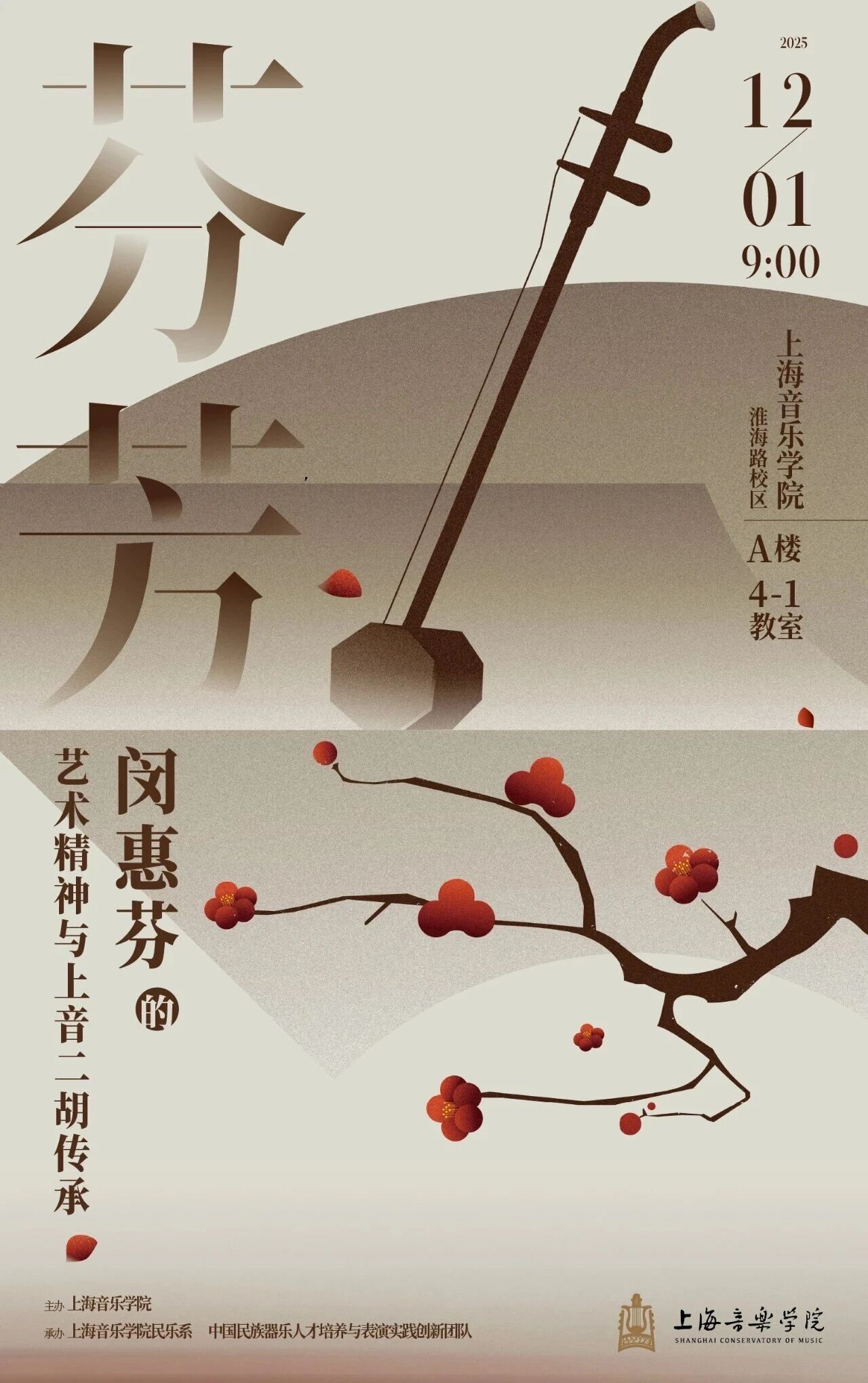 2025年11月30日至12月1日,由上海音乐学院主办、上海音乐学院民族音乐系承办的纪念闵惠芬大师诞辰八十周年系列活动在上海音乐学院举行。本次活动通过音乐会与研讨会相结合的方式,系统回顾闵惠芬的艺术成就、教学理念与精神影响,亦是“中国民族器乐人才培养与表演实践创新团队”项目的重要组成部分。