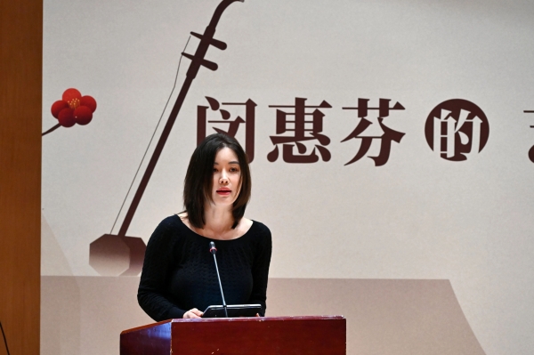 闵惠芬先生家属刘振学随后致辞,感谢上海音乐学院对闵惠芬的纪念与传承,并回顾陆轶文在闵惠芬晚年阶段所接受的系统指导。