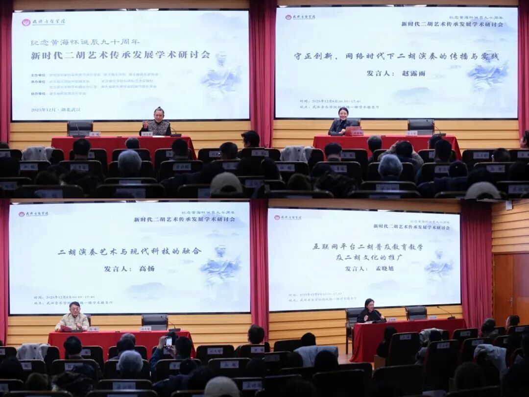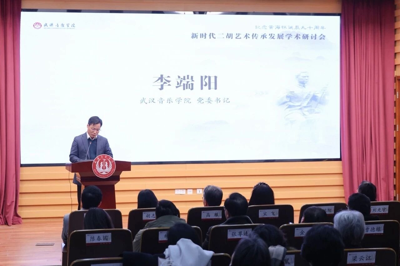 今年恰逢著名二胡演奏家、作曲家、教育家黄海怀先生诞辰90周年。由中国音乐家协会民族弓弦乐学会、武汉音乐学院、湖北省音乐家协会共同主办的“纪念黄海怀诞辰90周年·新时代二胡艺术传承发展学术研讨会”于12月7日至9日在武汉音乐学院成功举办。来自全国民族弓弦乐领域的70余位专家学者、院校院团代表齐聚一堂,共同探索二胡艺术传承创新之路,促进中国民族弓弦乐艺术高质量发展。