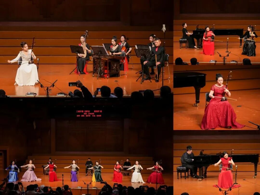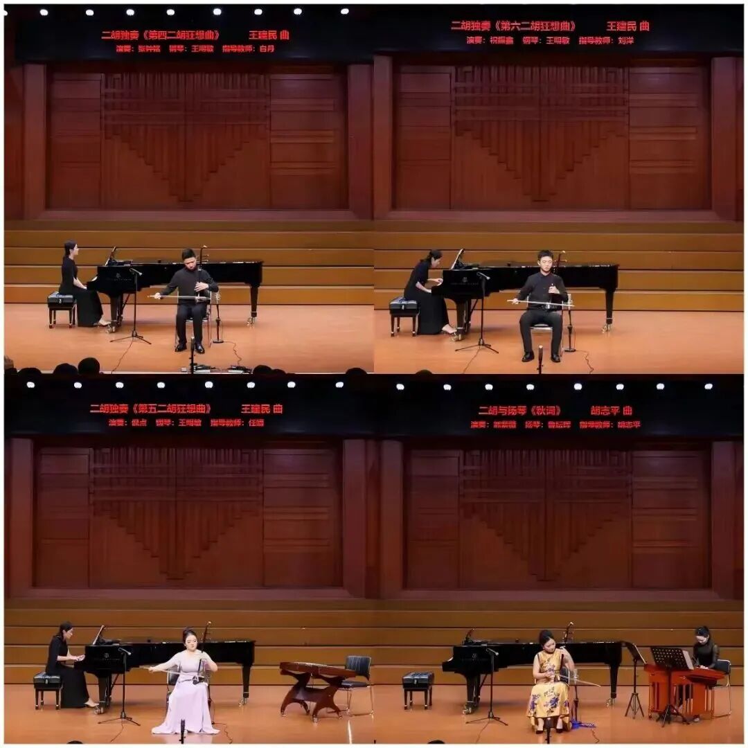 研讨会期间,武汉音乐学院青年二胡师生呈现两场音乐会。12月7日晚的青年二胡教师专场音乐会,白丹、任靖、万吉、尤毅懿、姚可馨、刘媛惠、赵露雨、汪媛8位武音青年二胡教师和担任伴奏、协奏的武音中乐系师生,演奏了《赛马》(黄海怀曲)、《江河水》(黄海怀移植)、《秋词》(胡志平曲)、《月的悲吟》(胡志平曲)、《赤壁怀古》(关乃忠曲)、《病中吟》(刘天华曲)、《乔家大院·爱情》(赵季平曲)、《别亦难》(何占豪曲)、《桃花坞》 (李渊清曲)等作品,以精彩的演绎向大师精神致敬,彰显了传承创新的力量。12月8日晚的优秀二胡学生专场音乐会,来自中乐系的青年学子们精彩诠释了刘天华的《月夜》,黄海怀的《江河水》,胡志平的《秋词》,王建民的第四、第五、第六二胡狂想曲,李博禅的《丝路时光》,王云飞的《巾帼》等经典曲目和近年来的二胡新作品,展现了武汉音乐学院二胡艺术拔尖创新人才培养的突出成果。