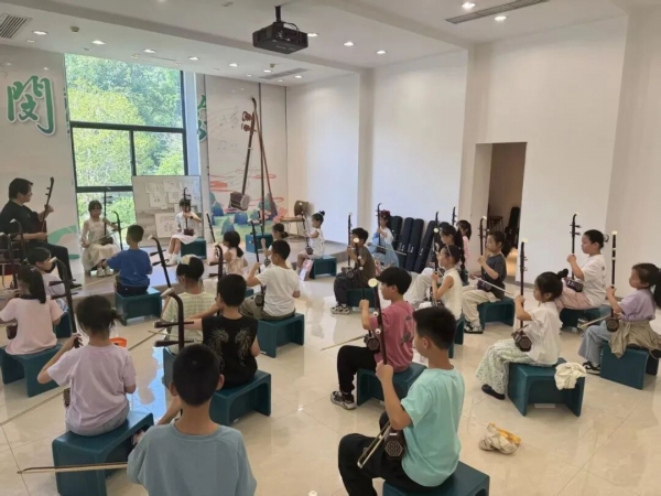 但张宇,这位闵惠芬的弟子也是二胡班的发起人之一,却有着不同的见解:“先种下种子,营造好氛围。至于能走出多少人才,那是未来的事。”他看着教室里来自湖北、安徽、福建等地的孩子们,眼神温柔:“这些孩子随着父母来到万石,我们给予他们学习艺术的环境和闵惠芬艺术精神的滋养,将来无论他们走到哪里,都会随身携带。”