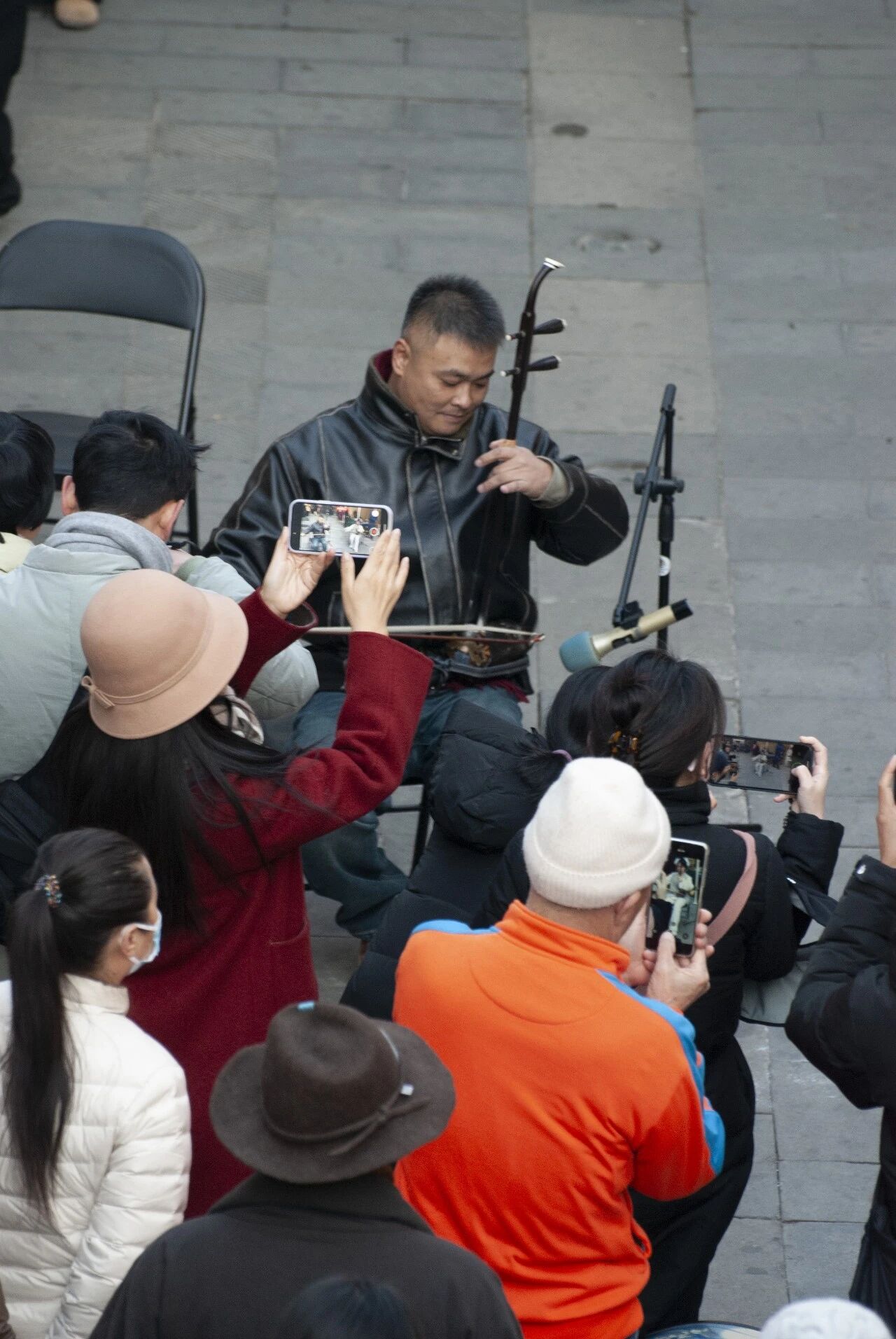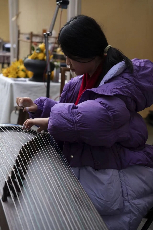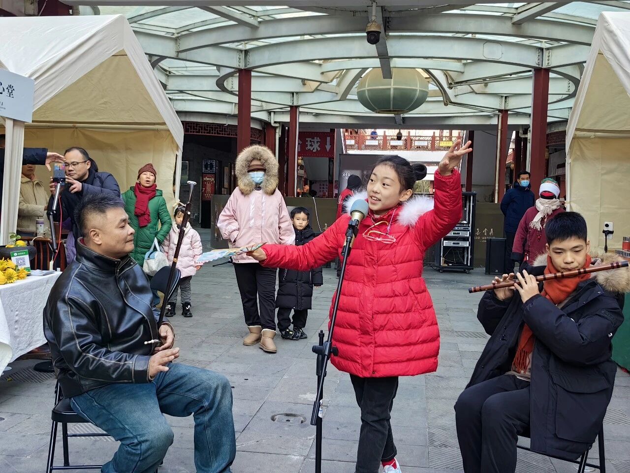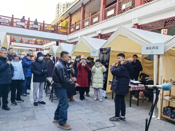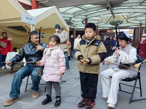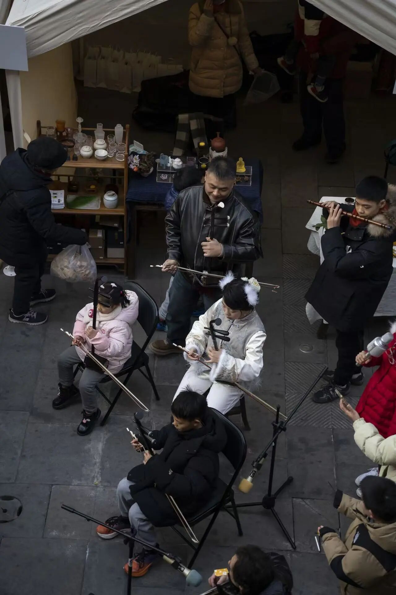 当《茉莉花》的旋律响起,现场气氛逐渐升温。这首经典曲目既传递出节日的喜悦,也寄托着冬日里对春天的向往。此外,团队还演绎了《四季歌》等多首民歌。为照顾老年观众,古筝演奏了《北京的金山上》。适逢马年,演出也融入武侠音乐元素:如成龙电影《醉拳》插曲《市集》,轻快的节奏与市集主题相映成趣;竹笛独奏《刀剑如梦》激昂慷慨,引人仿佛踏入武侠世界;《赛马》则以奔腾的旋律,将听众带入辽阔草原的意象中。
