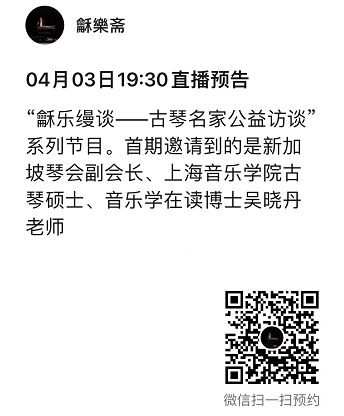 首期嘉宾,我们邀请到的是新加坡古琴协会副会长、上海音乐学院古琴硕士、音乐学在读博士的吴晓丹老师。从南洋艺术学院的戏剧表演专业,到上海音乐学院的古琴硕士及音乐学博士,成年以后习琴的她走过了怎样非凡的习琴之路?又经历过怎样的困难坎坷?本周日晚吴晓丹老师将为大家分享她在漫漫习琴路上,与古琴结下的不解之缘。