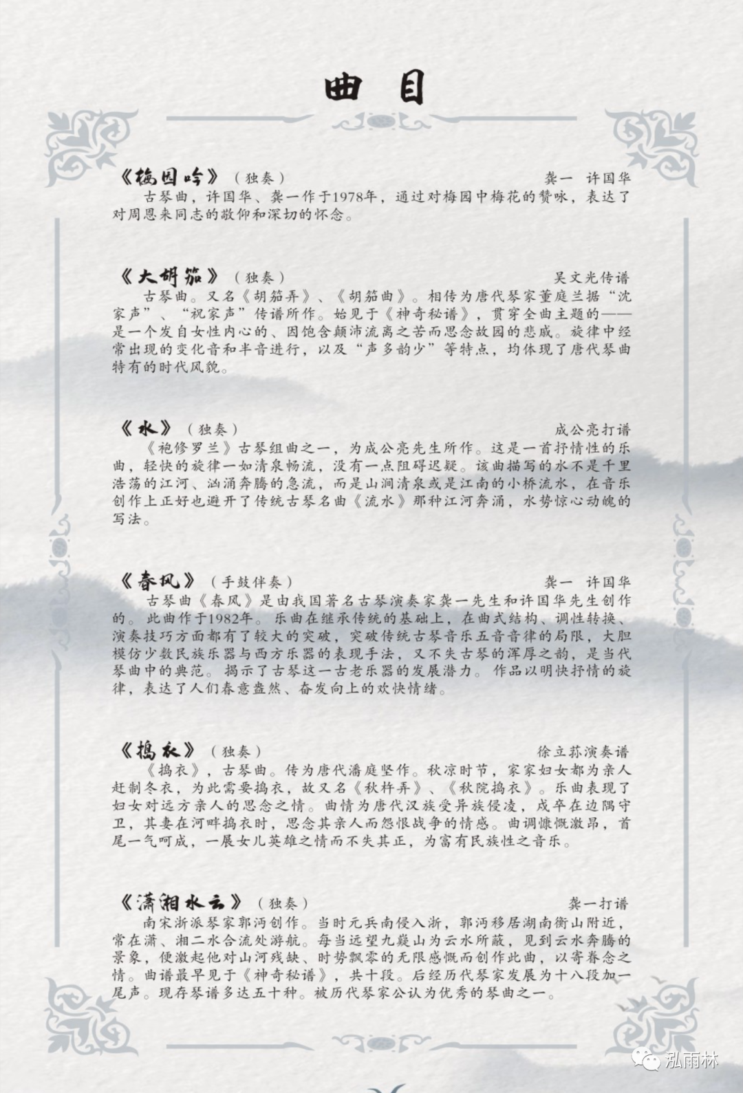 古琴教学班音乐会(二)”;2017年开展7次董雯雯古琴工作坊古琴进校园活动;2017年8月在重庆大剧院举办“琴韵·流觞——董雯雯古琴赏析音乐会”;2018年6月1日举办夏蝉·流韵古琴教学班音乐会(三)”;2020年1月举办“丝桐蜀韵—董雯雯古琴教学班音乐会(四)”。