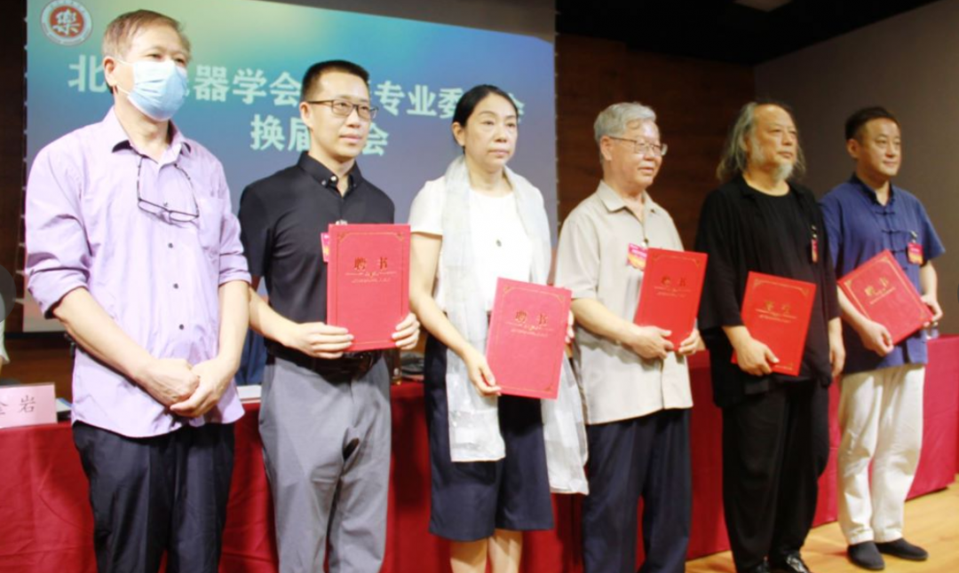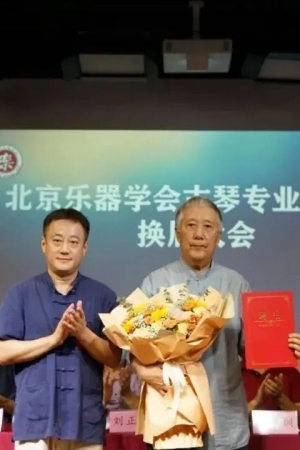 北京乐器学会会长刘正辉为北京乐器学会古琴专业委员会新任会长、副会长、秘书长颁发了聘书;赵寒阳副会长为常务理事和理事代表颁发聘书。特别感谢杨青会长为古琴专业委员会做出的优异成绩和贡献,新任会长张子盛老师为杨青老师颁发北京乐器学会古琴专业委员会名誉会长聘书。
