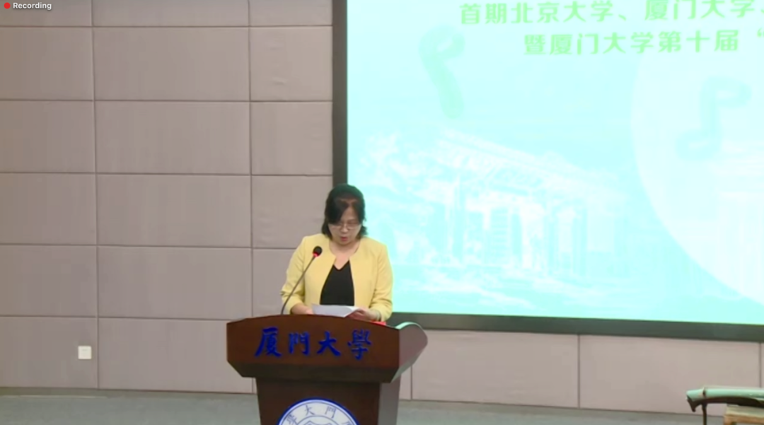 论坛开场后,厦门大学国际中文教育学院院长陈志伟女士首先致辞。她向各级单位表示感谢,并指出,北京大学中外人文论坛关注“人文交流,文明互鉴”,有先行之功,而厦门大学于1956年创设海外合作部,并设立有全国首家国际中文教育学院,一南一北致力海外交流合作,交相辉映。古琴散发着中国文化的独特魅力,定能促进多元文化互学互鉴。