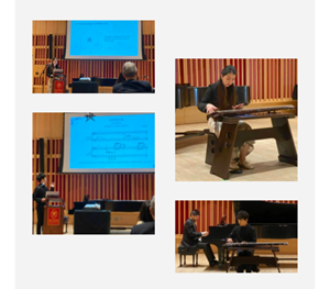 4月7日上午,中国音乐与文化艺术硕士学生史文睿、王哲分别就古琴的音韵哲学、当代古琴音乐的指法等主题进行演讲及表演展示。