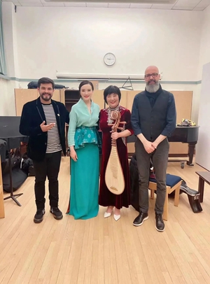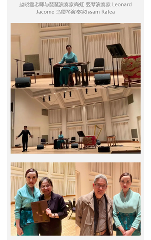 4月7日晚,中央音乐学院古琴教师赵晓霞与琵琶演奏家高虹领衔的跨文化音乐组合“三大洲三重奏”共同在巴德学院 Olin Hall举行了一场精彩纷呈的音乐会。赵晓霞带来古琴名曲《流水》、《离骚》、《广陵散》和即兴演奏的《易宕》,还与琵琶演奏家高虹、委内瑞拉竖琴演奏家 Leonard Jacome及乌德琴演奏家Issam Rafea即兴同台切磋,令观众沉浸其中,现场氛围热烈。