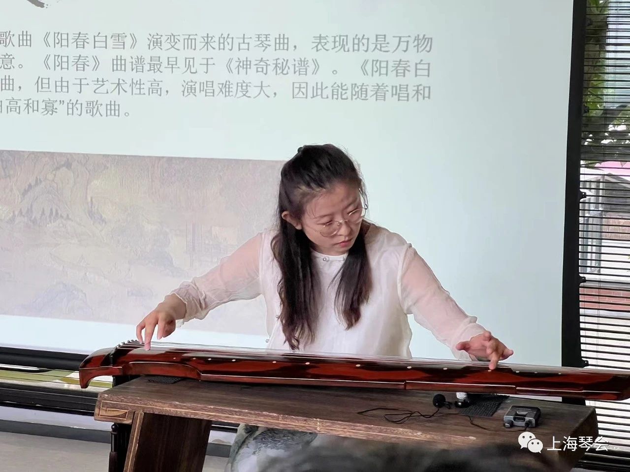 活动第一部分为隐士文化讲解。主讲杜象涵沿着中国历史发展的时间轴为脉络,将隐士文化与古琴的渊源依次道来。