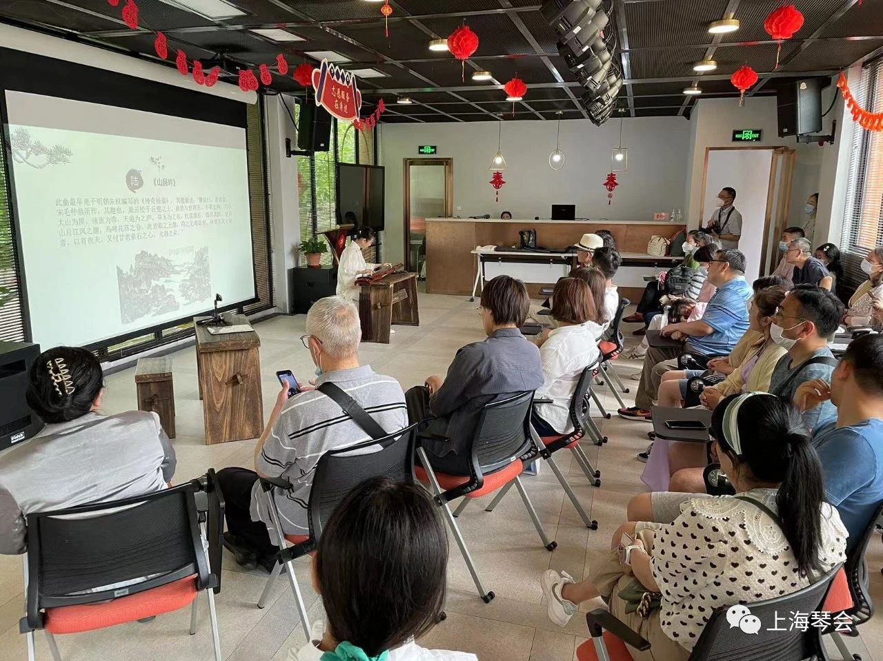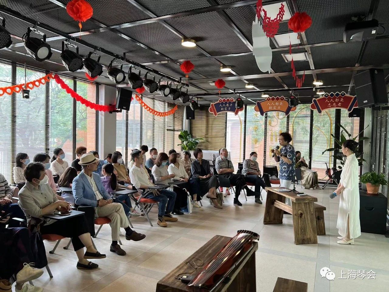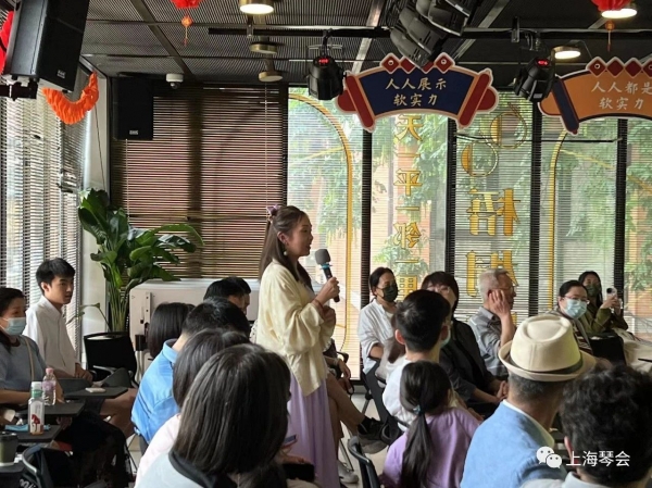 琴音绕梁余味不绝之际,上海琴会会长、上海音乐学院博士研究生导师戴晓莲教授也来到了雅集现场,与琴友们亲切互动,回答琴友提出的各种关于琴学的问题。与会琴友们也积极分享讨论了聆听讲座与琴曲的感受体会。活动在雅趣盎然的气氛中落下帷幕。