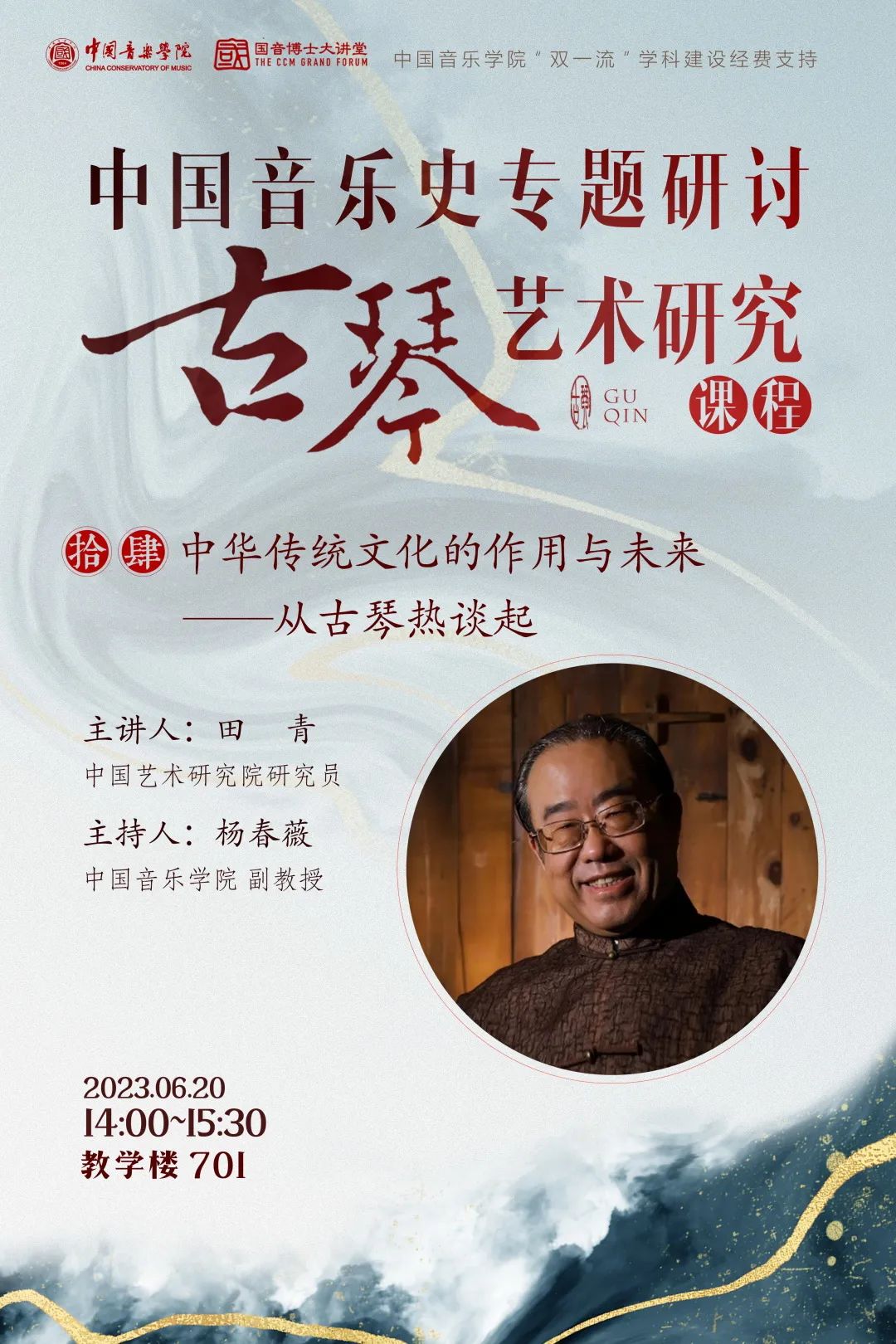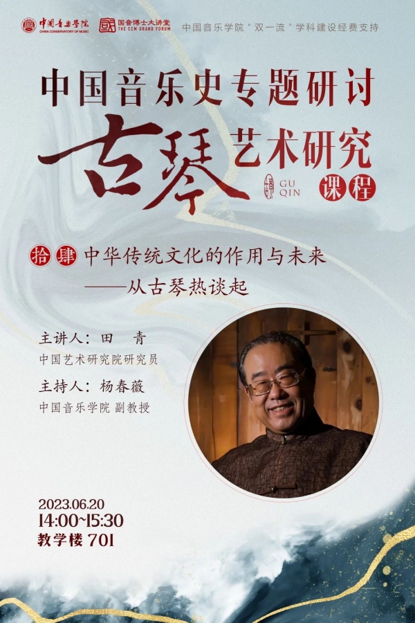 《中国音乐史专题研讨:古琴艺术研究》课程是中国音乐学院打造的“国音博士大讲堂”特色学术品牌课程之一,由音乐学系康瑞军教授担任课程负责人,授课团队包括吴文光先生等多位国家级非物质文化遗产传承人,以及校内外中青年专家。采用“讲座、研讨、工作坊”的形式,实行“一课多师”制,强化师生、生生之间的交流合作,实现教、学、研全面覆盖。课程内容涵盖琴曲、琴器、琴人、琴歌、琴谱、琴史、琴论、琴派等诸多方面,深入讲解古琴演奏技巧技法,观摩体验古琴艺术魅力。旨在面向青年学生,实现对中华优秀古典艺术的创新性传承。