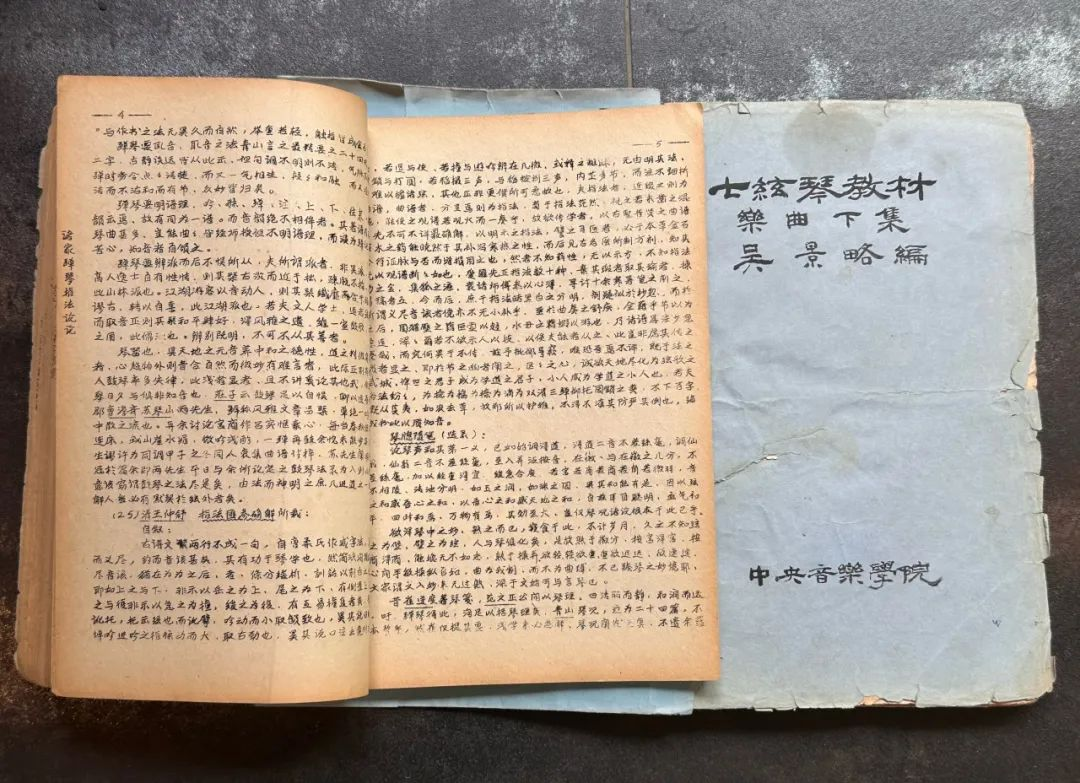 当时,高等艺术院校中并无专门为古琴编写的系统教材,为了满足教学需求,吴景略先生编纂了4册油印本《七弦琴教材》,并在教学中使用,取得了很好的教学成果,为推动古琴在专业音乐教育体系的学科建设做出重要贡献。