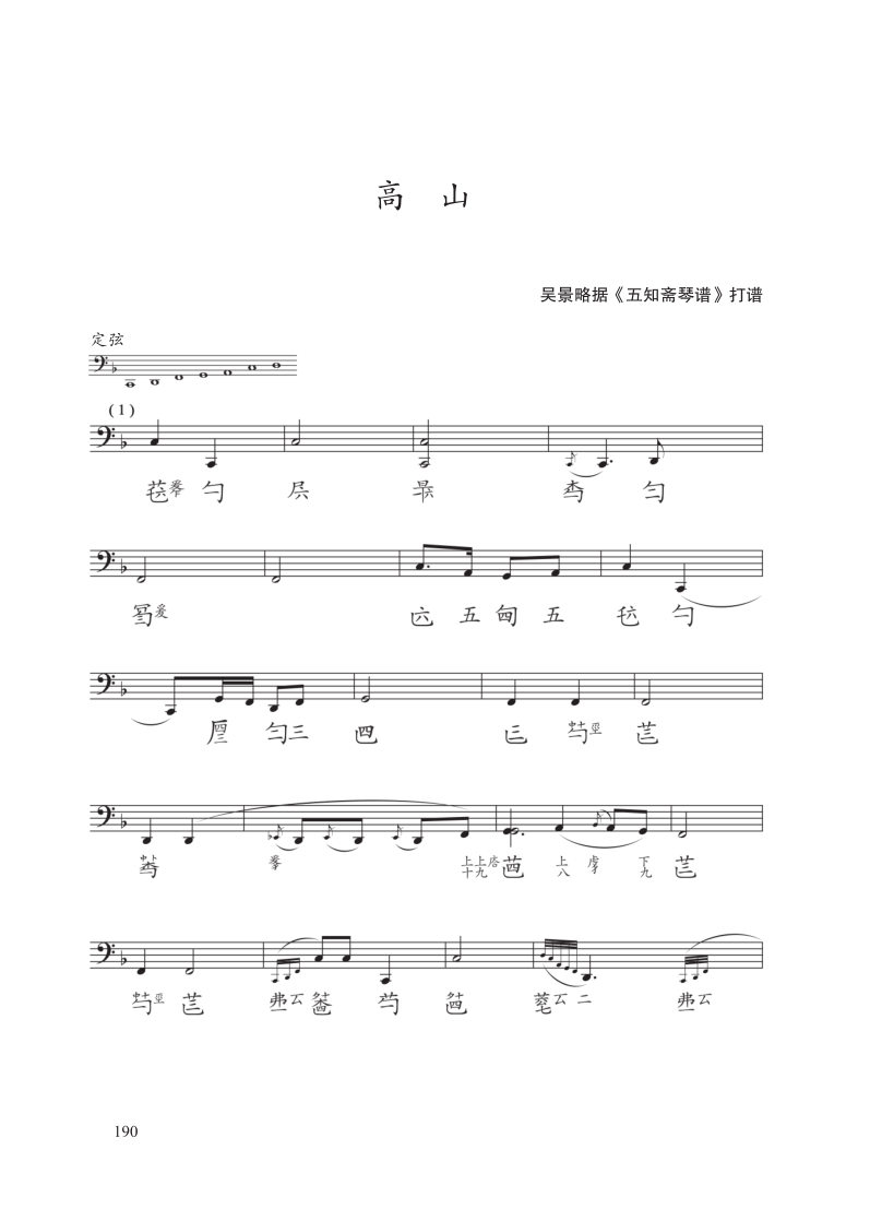 在琴曲部分混合了三种古琴谱式:简谱加减字谱、五线谱加减字谱和传统竖排的纯减字谱。此举意在使学习者了解与掌握各种古琴谱式,为使习者学成后不仅能视奏,也利于做琴学研究和打谱之功用。