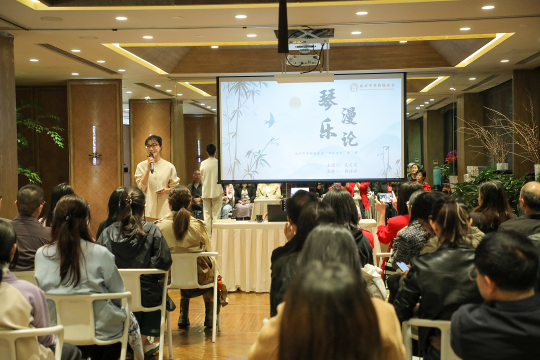 首先由本场讲座主持人、北京中华传统乐会会长杨婷婷老师为大家做开场介绍,在讲座正式开始前,大家欣赏了一段吴文光老师演奏的十面埋伏,琵琶弹奏功力深厚。现场无不称赞叫绝。