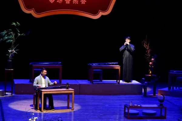 本次专场古琴音乐会形式多样,曲目丰富,既有传统古琴独奏曲目,如《流水》《梅花三弄》《潇湘水云》,也有现代古琴曲目《葬花吟》《三峡船歌》,还有琴埙合奏《阳关三叠》,琴箫合奏《渔樵问答》和弦歌《长相思》《鬲溪梅令》《关山月》等,精彩纷呈。此外,还融合了香道、茶道和花道于同一舞台之中,可以说给观众朋友带来宁静而雅致的一场音乐会。
