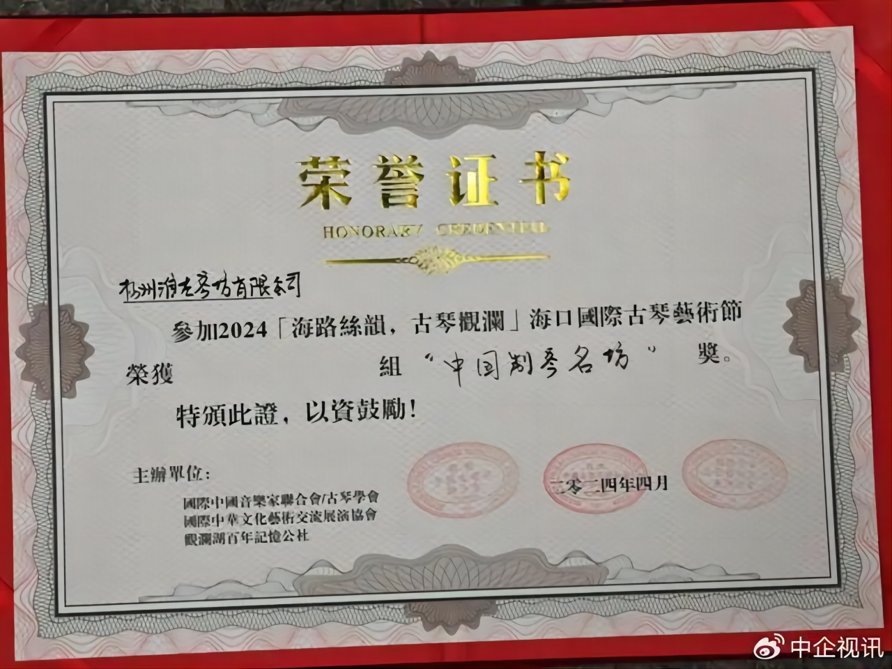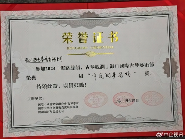 高波先生和蔡建平先生,这两位淮左琴坊的斫琴大师,他们的技艺和才华得到了业界的广泛认可。他们在古琴制作技艺、文化传承以及艺术创新等方面的卓越成就,为淮左琴坊赢得了此次海口古琴艺术节中国制琴名坊这一荣誉。这一荣誉不仅提升了淮左琴坊在行业内的地位,也为其未来的发展注入了新的动力。